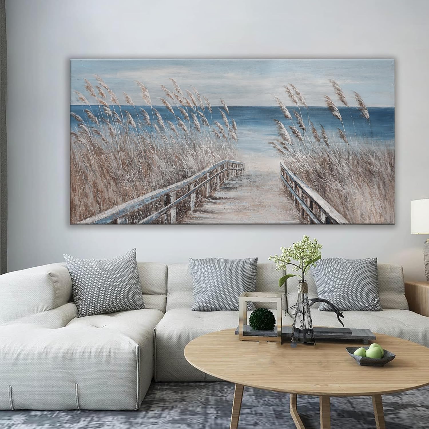 Canvas Wall Art Decor Large Modern Wall Art Decorations Blue Beach Coastal Artwork for Walls Textured Wall Art Prints Pictures Wall Decor Wall Art Bedroom 29"X58" For Room Living Room Office Wall Decor