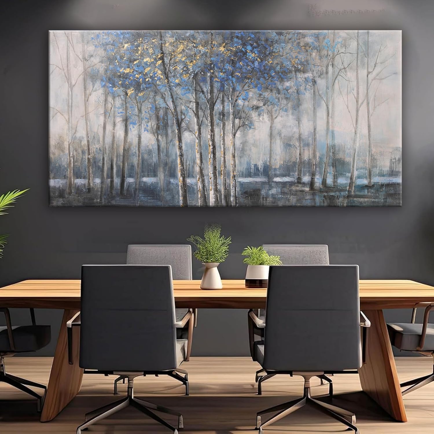 Canvas Wall Art Decor Pictures Wall Decor Prints Modern Wall Art Decor Large Gold Wall Art Blue Grey Misty Botanical Textured Artwork for Walls For Room Living Room Bedroom Office Wall Decor 29"X58"