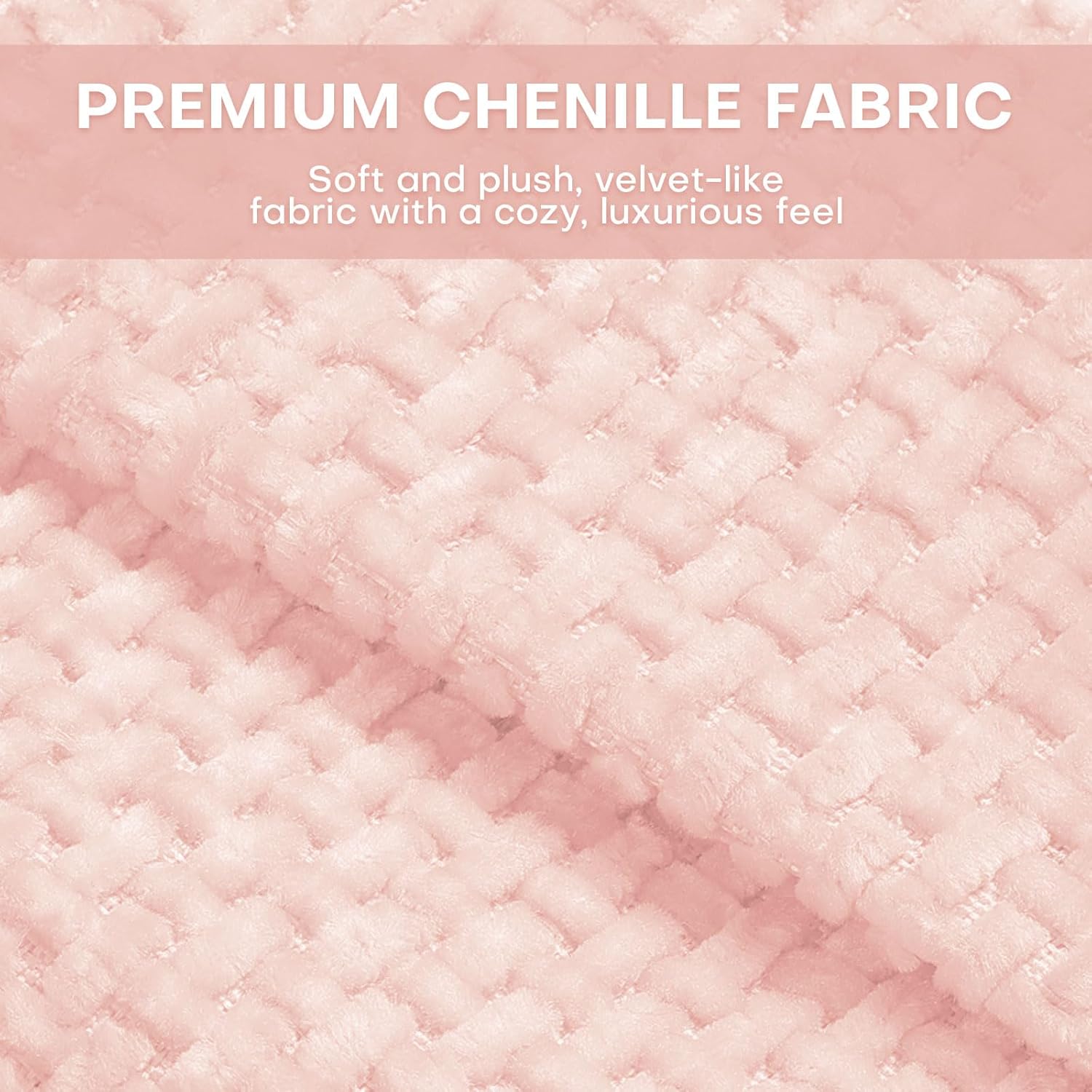Chenille Fabric Accent Chair, Upholstered Armchair with Solid Wood Legs, Modern Living Room Accent Chair, Comfy Single Sofa Chair Reading Club Chair for Bedroom Reception Lounge, Pink