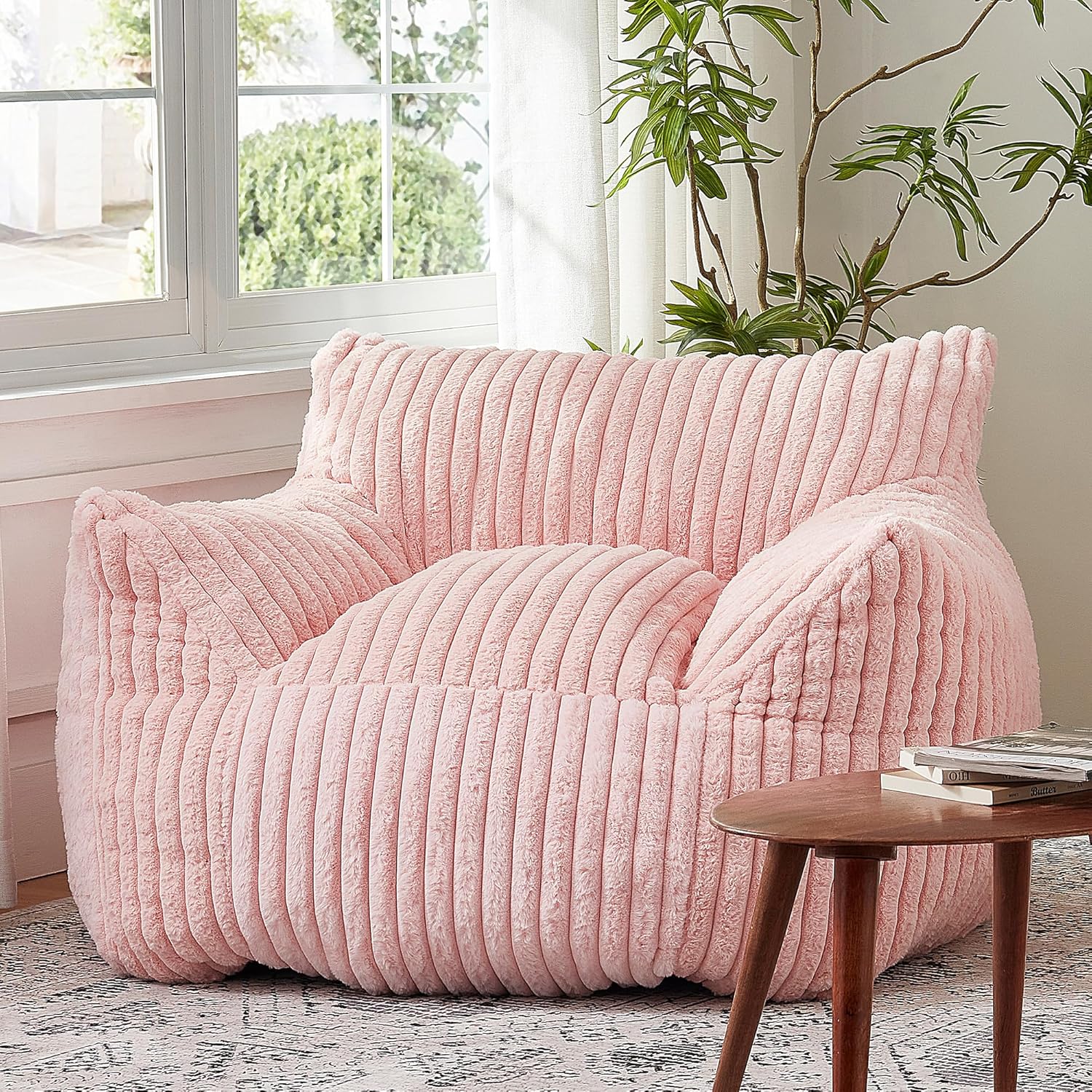 Giant Bean Bag Chairs for Adults with Filling Plush Fluffy Bean Bag Chairs for Teens with Armrests Comfy BeanBag Lazy Couch Sofa Chair for Bedroom Living Room Reading