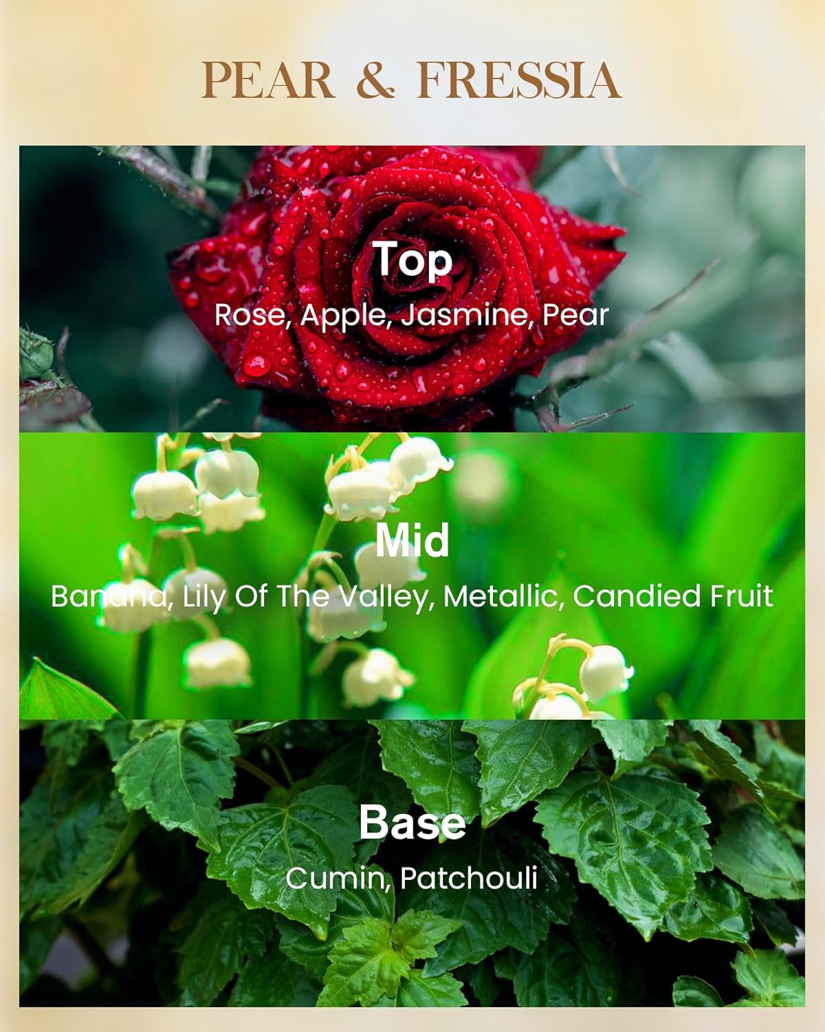 M&SENSE 3 Wick Soy Candles for Home Scented, Pear & Fressia Scented Aromatherapy Candle for Stress Relief, 35oz 150 Hour Burn Time, Long Lasting Highly Scented Candle Gift