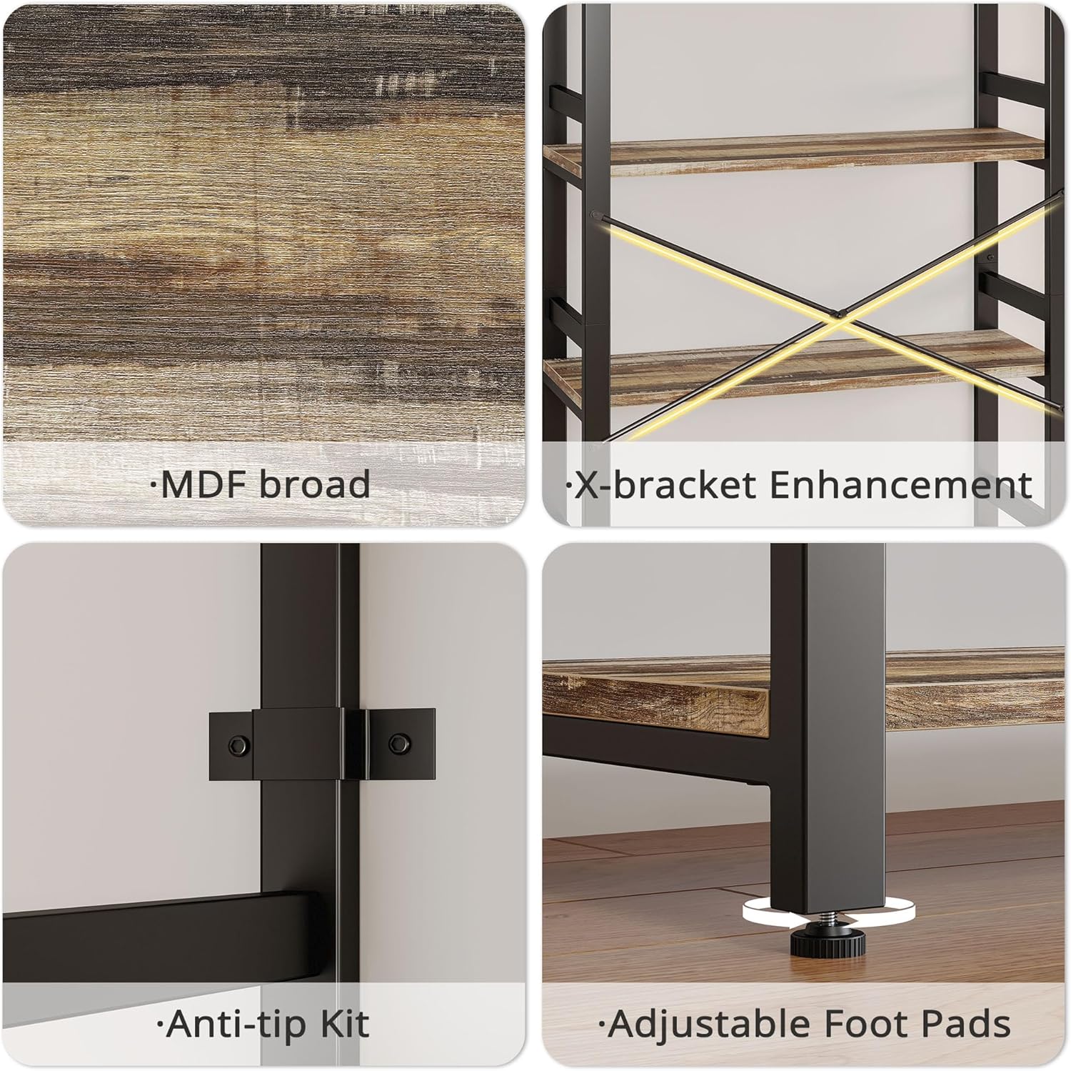 - Anti-Tip Kit: Tipover Resistance Device and 4 adjustable floor protective footpads are included for safety. These features provide added stability and prevent the bookshelf from tipping over, protecting your belongings from damage