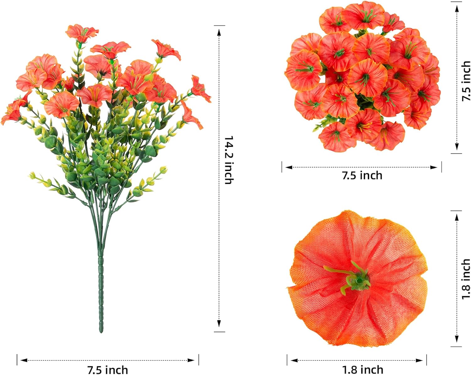 Artificial Fall Flowers Fake Plants for Outdoors Autumn Decoration, 12 Bundles Orange Silk Morning Glory with Eucalyptus Look Real UV Resistant Faux Flowers for Outside Planters Front Door Yard Indoor