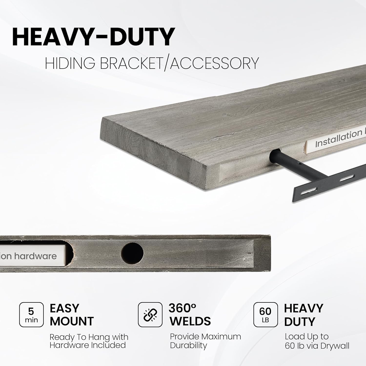 - EASY INSTALLATION: Our floating shelf bracket aligns with standard 16" wall studs and sits flush against the wall for a clean, seamless finish. Each shelf includes detailed instructions, a magnetic level, self-tapping drywall anchors, and screws. Whether you're a beginner or an experienced DIYer, you can securely mount these rustic shelves in minutes