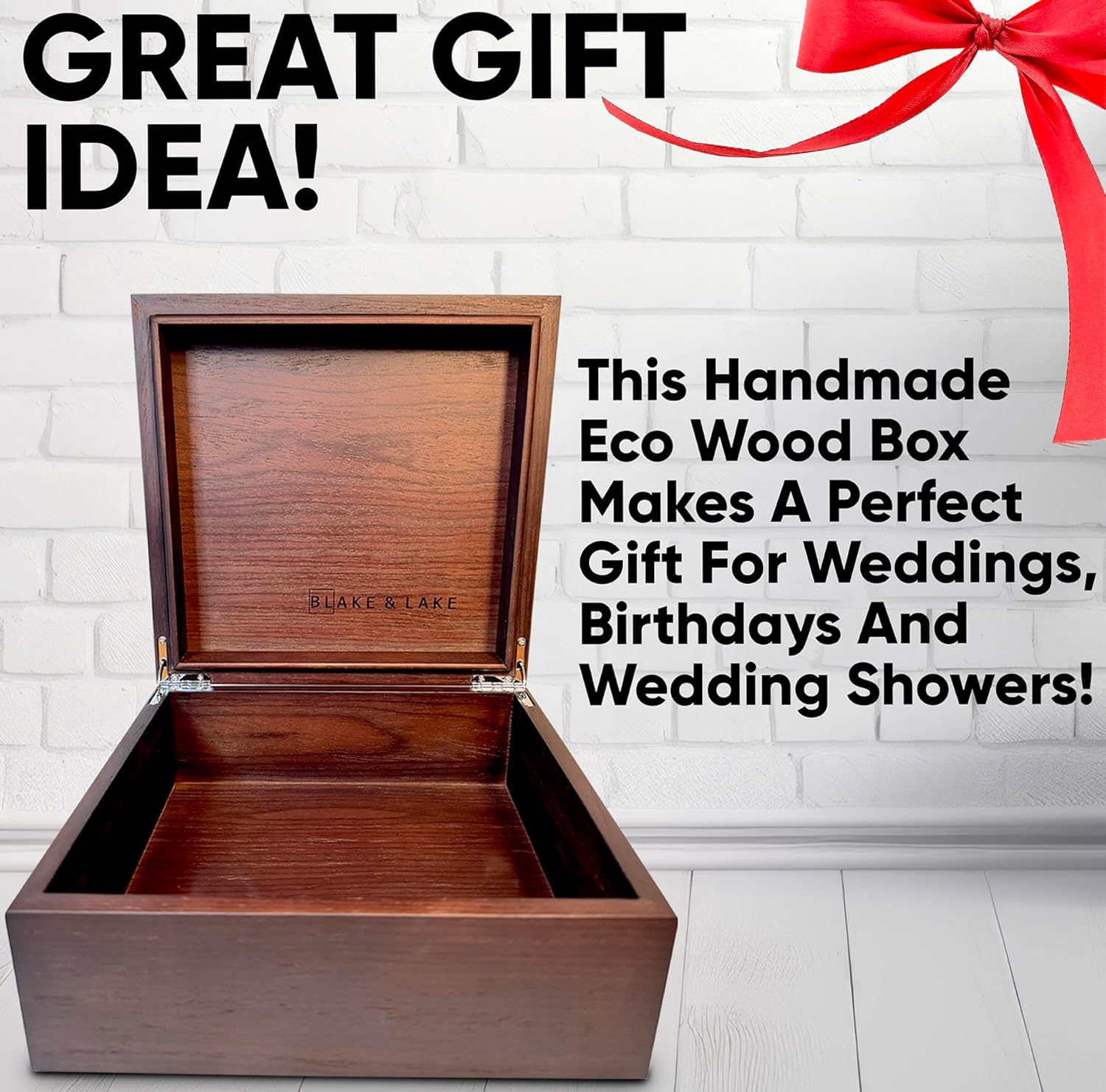 - Give the Gift of Organization with a wooden storage box by Blake and Lake. Comes with the Blake & Lake recycled cardboard box which makes it perfect for gift wrapping. Proudly give the gift of a wood eco keepsake box to a friend or loved one knowing it's not only safe for your home but a solid wooden box that will last a lifetime!
