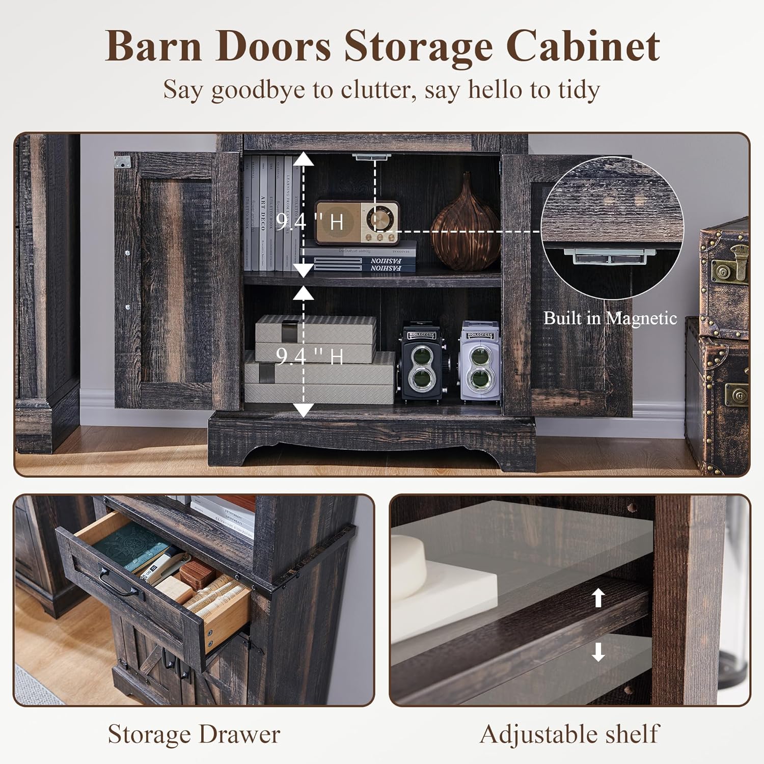 RedLemon Bookshelf with Storage Cabinet, 72" Tall Farmhouse Bookcase with Adjustable Shelves and Barn Door, 4 Tier Office Wood Bookshelf with Drawer for Office Library Living Room (Dark Rustic Oak)