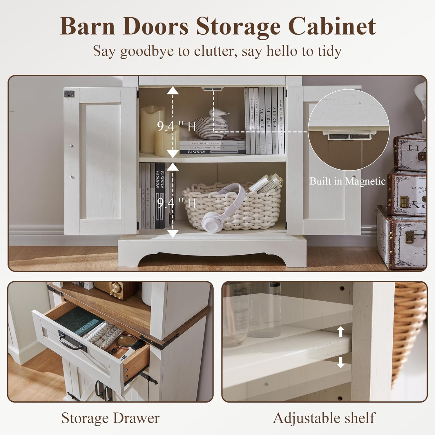 RedLemon Bookshelf with Storage Cabinet, 72" Tall Farmhouse Bookcase with Adjustable Shelves and Barn Door, 4 Tier Office Wood Bookshelf with Drawer for Office Library Living Room (Antuique White)