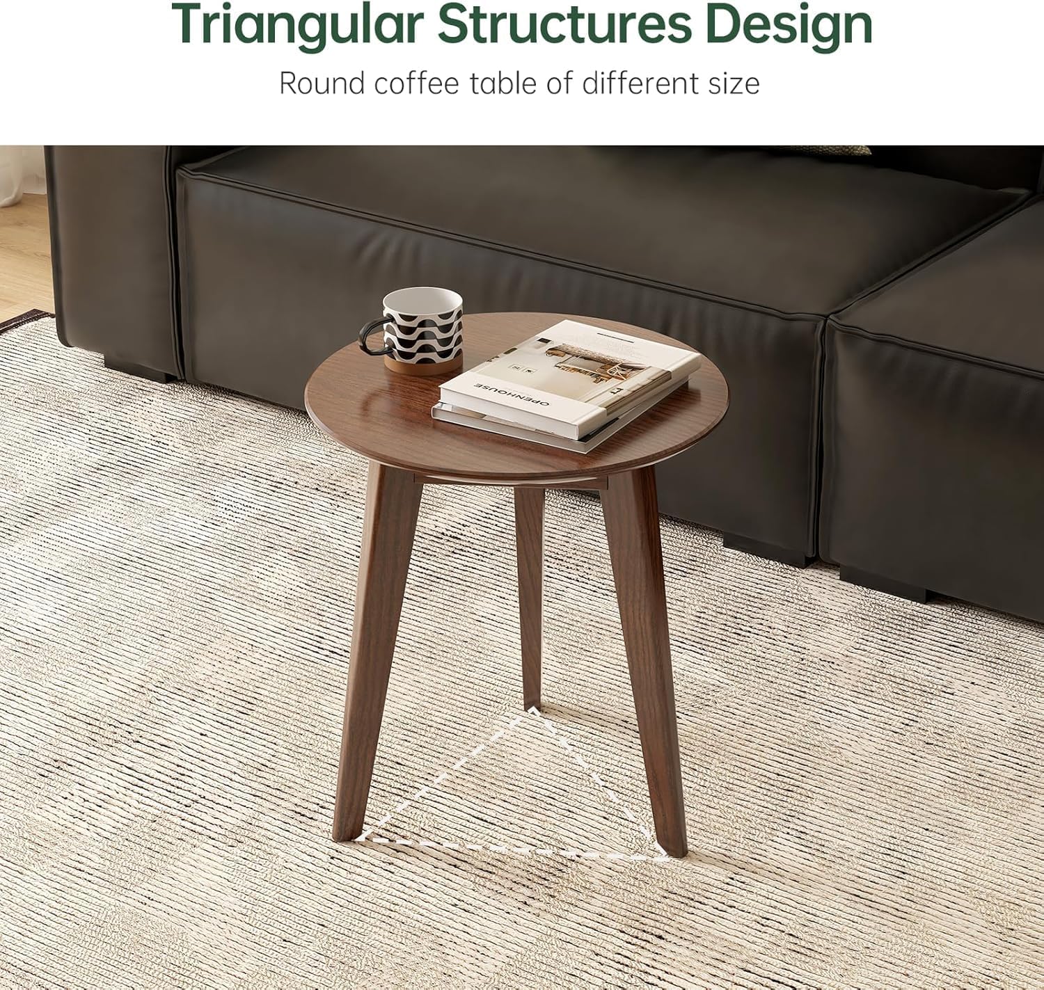 100% Solid Oak Round Side Table Set of 2, Small Bedside Table for Small Spaces, Living Room End Table with Stable Frame, Modern Nightstand for Bedroom Couch(Walnut, 17.71" D x 19.68" H)