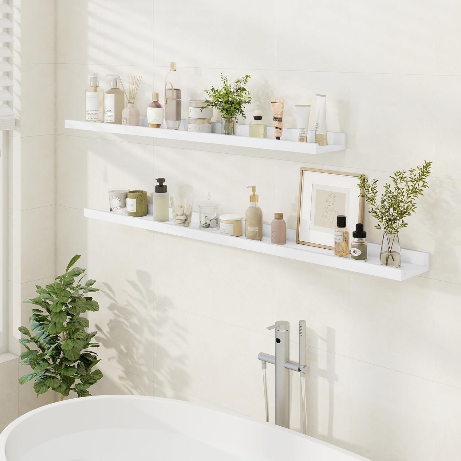- Multi-Functional: Get creative and find more functions other than the long picture ledge shelf. FLYJOE storage ledge shelves can act as a kids' bookshelf, display shelf for collectibles figures, and more.