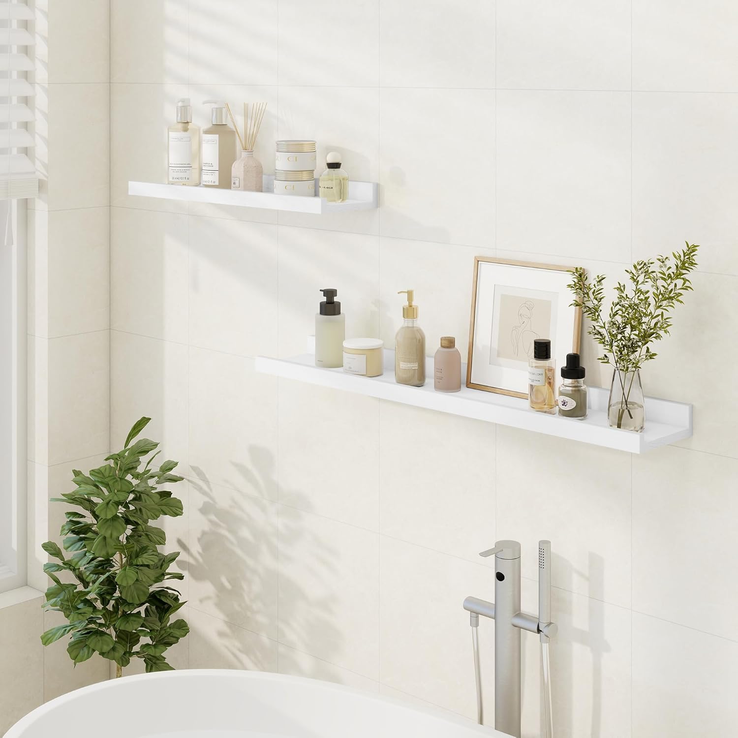 - Picture Ledge Design: Ideal for displaying photos, artwork, small plants, or collectibles, these shelves feature a thoughtful ledge design with a subtle lip and a shallow groove behind it. This design securely holds items in place while maintaining a clean, modern look.