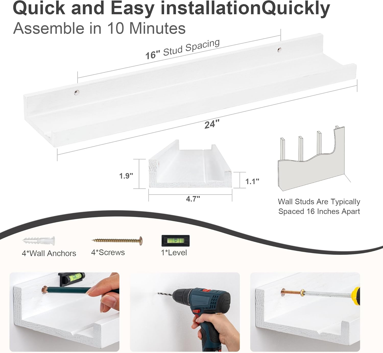 - Multi-Functional: Get creative and find more functions other than the long picture ledge shelf. FLYJOE storage ledge shelves can act as a kids' bookshelf, display shelf for collectibles figures, and more.