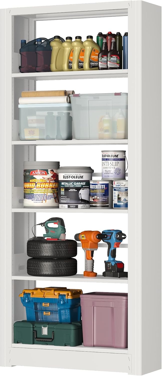 5-Tier Metal Bookshelf, 69" Tall Bookcase, Adjustable Bookshelves with Deep Display Shelves, Heavy Duty Book Shelf, Open Book Cases for Living Room, Home, Office, Library, Garage (White)