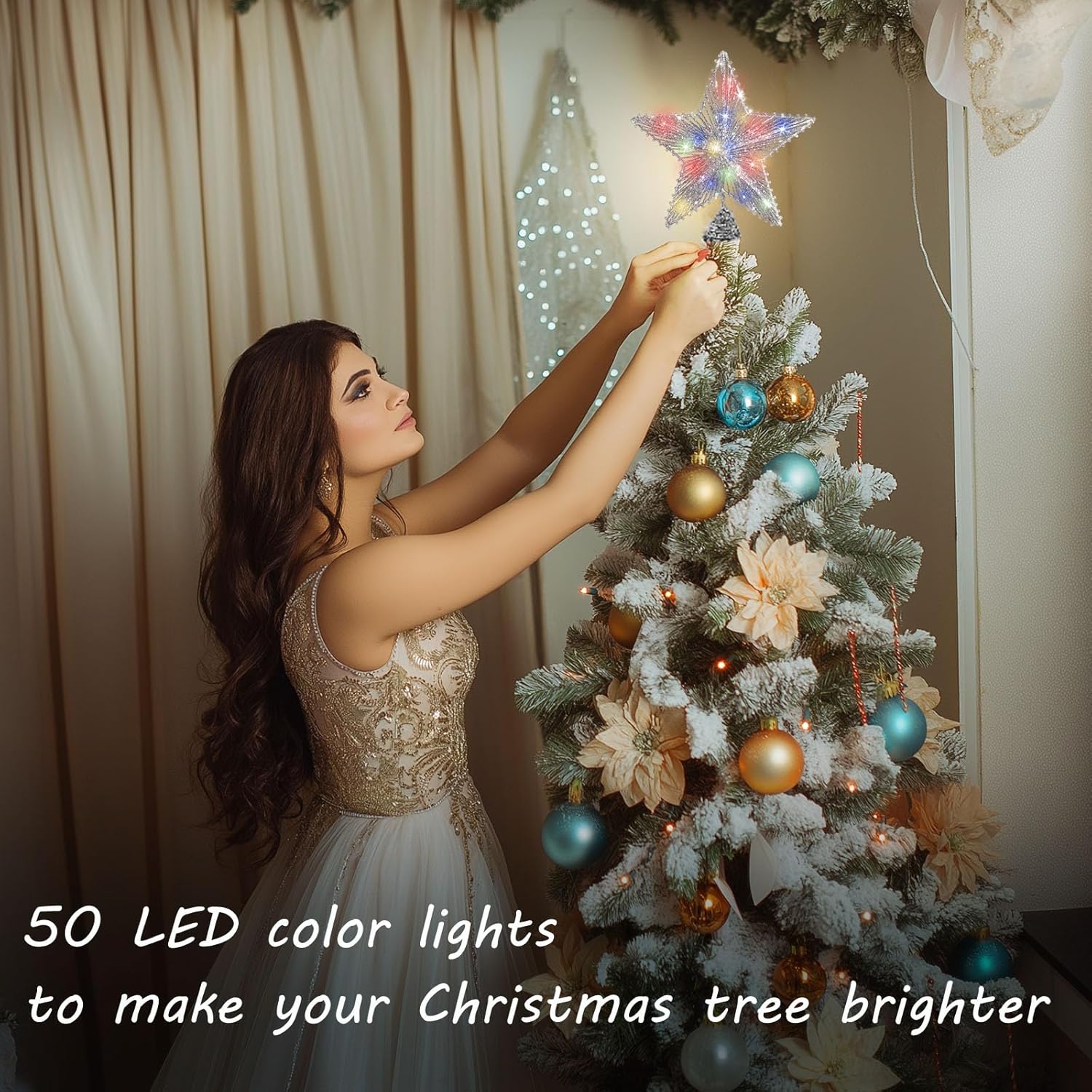- Silver Christmas Tree Topper Lighted: Designed in the shape of a star, wrapped in a string of colorful LED lights that glisten in the charming warm light, this hollow star decoration adds sparkling elegance to your Christmas tree. The surface of our Christmas tree decoration has many shiny sequins and powders that sparkle in the light to add an elegant and fantastical atmosphere to any Christmas decorating theme