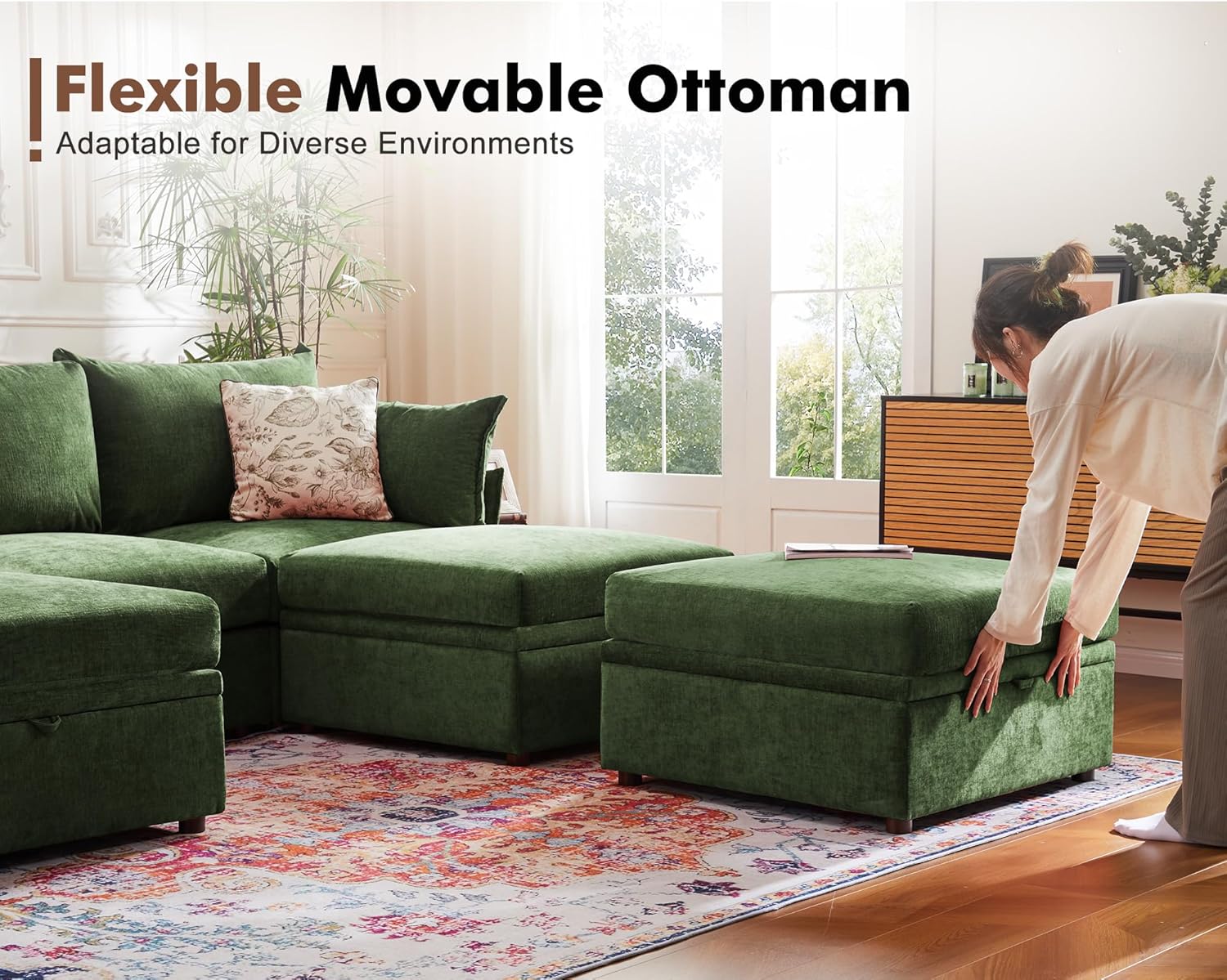 134.6" Luxury Modular Sectional Convertible Sofa with Storage Ottoman, L-Shape 5-Seat Oversized Comfy Couch Deep Seat with Reversible Chaise - Chenille Green