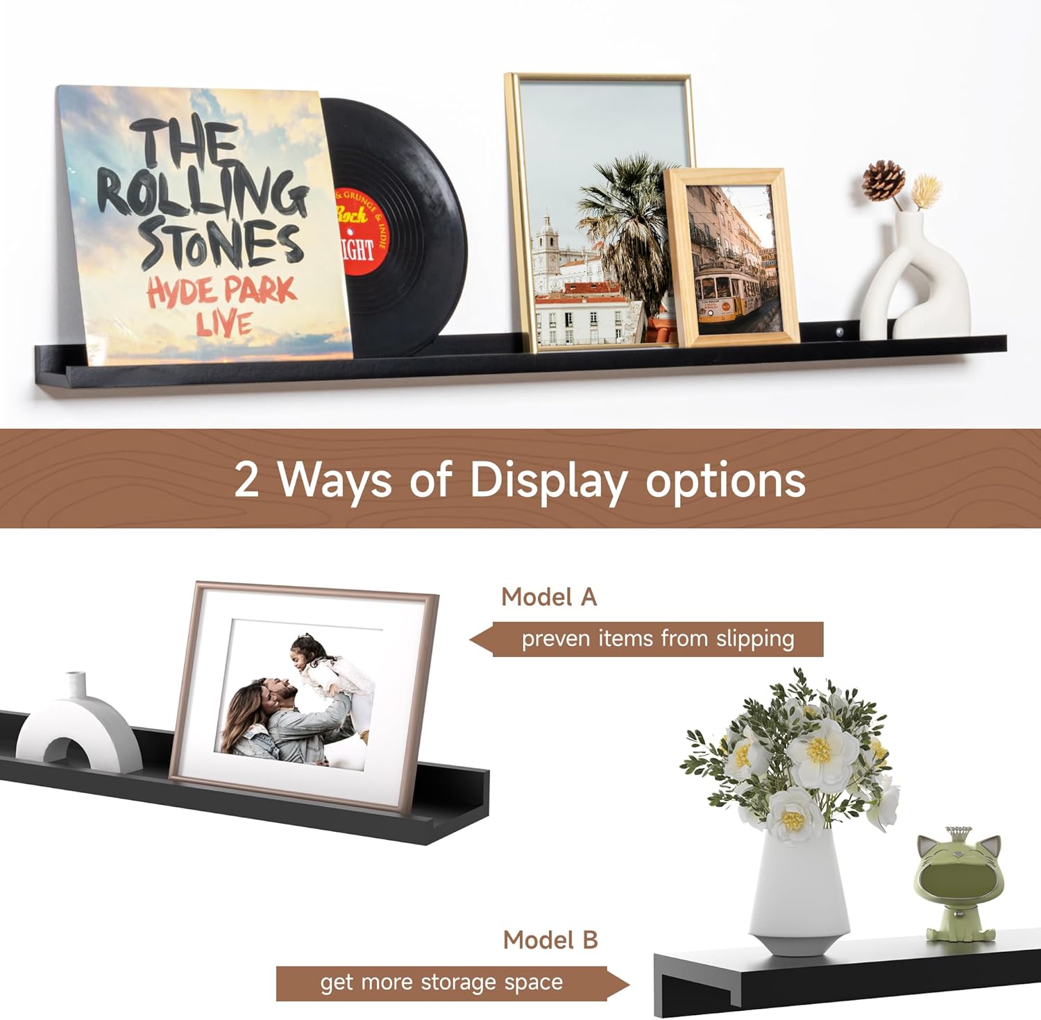 Fun Memories Picture Ledge Shelf, 48 Inch Floating Shelves Set of 2, Large Nursery Book Shelves for Toys Storage, Kids Bookshelf Wall Mounted for Wall Decor Books Photo Frames, Black