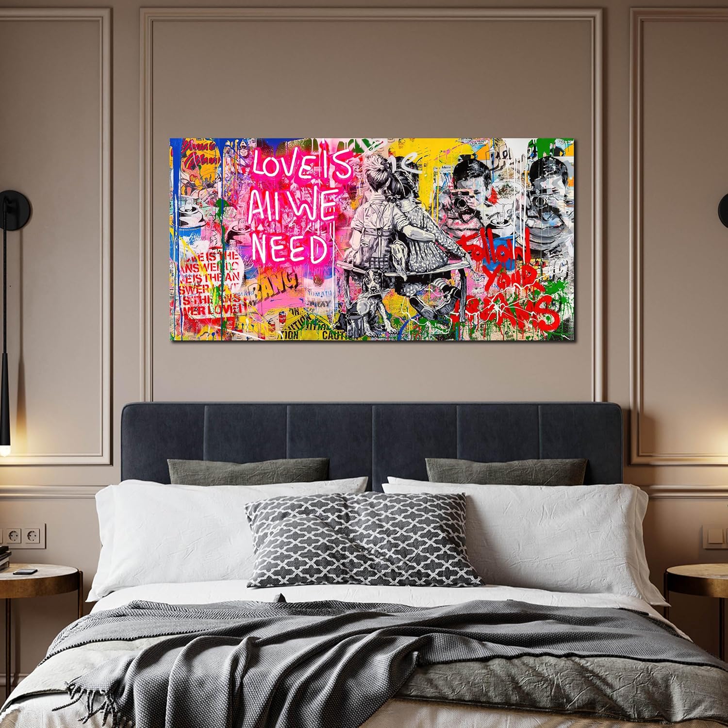 - CANVAS WALL ART SIZE: Size is 24" x 48" Colorful banksy wall art for living room