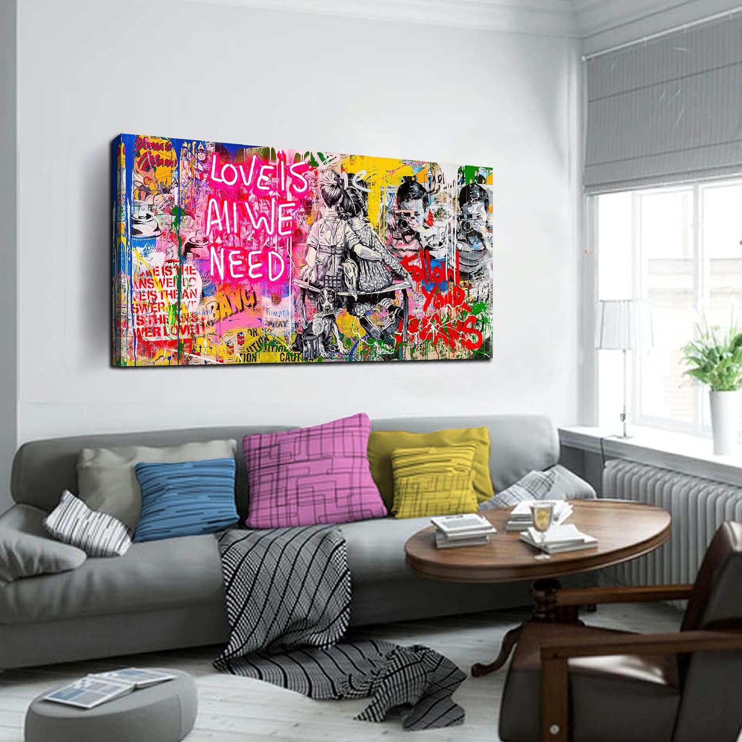 Colorful Banksy Wall Art for Living Room - Graffiti Posters for Teen Girls Room Ready to Hang Size 24" x 48"