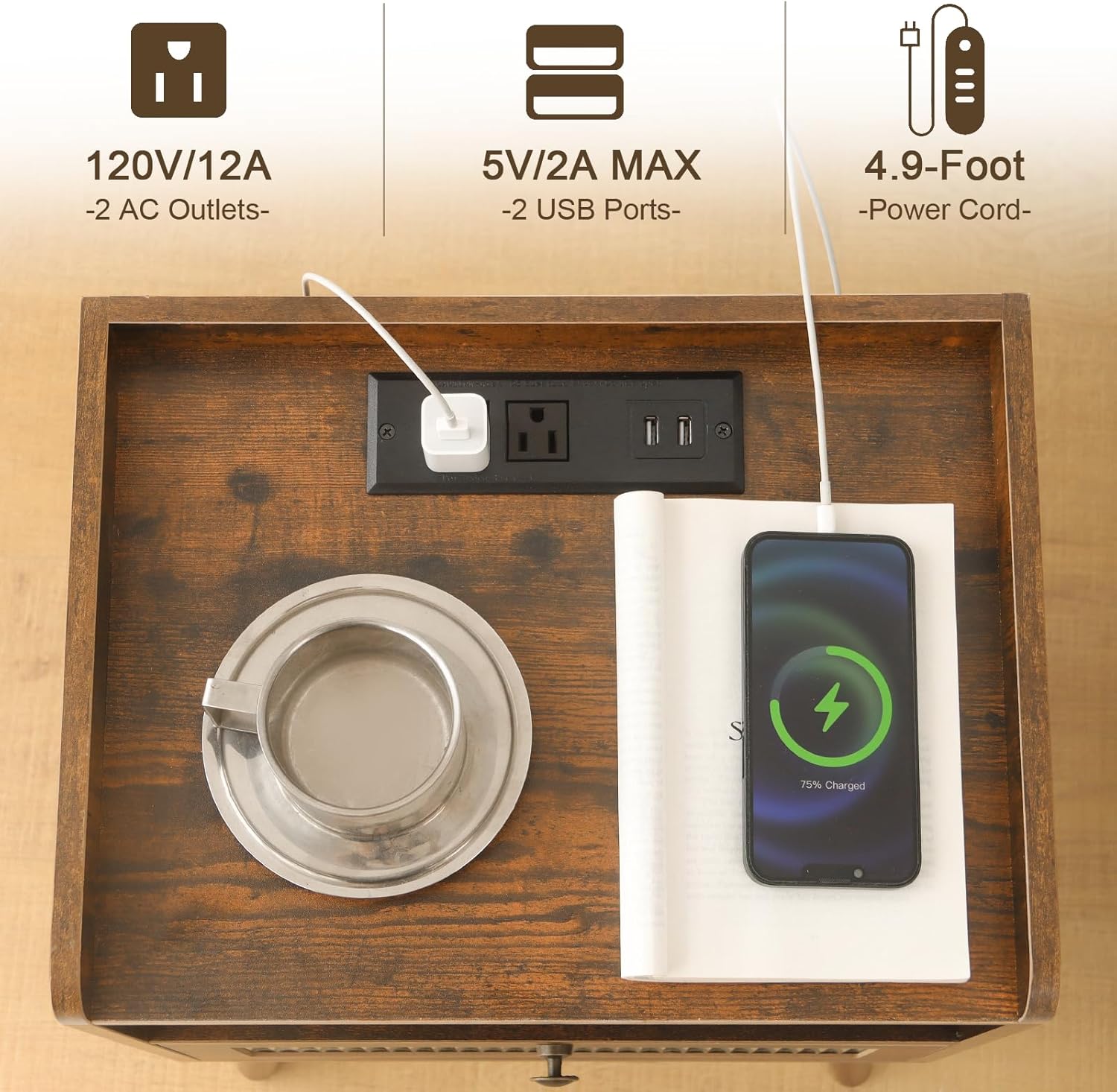 - Multifunctional Nightstand: This mid century night stand with the charging station is equipped with 2 USB Ports and 2×3-Prong Power Outlets that can meet your needs to charge phones, iPads, laptops, and desk lamps easily. The 4.9-foot-long electrical cord makes phones, and ipads when charging that also is within your arm’s reach
