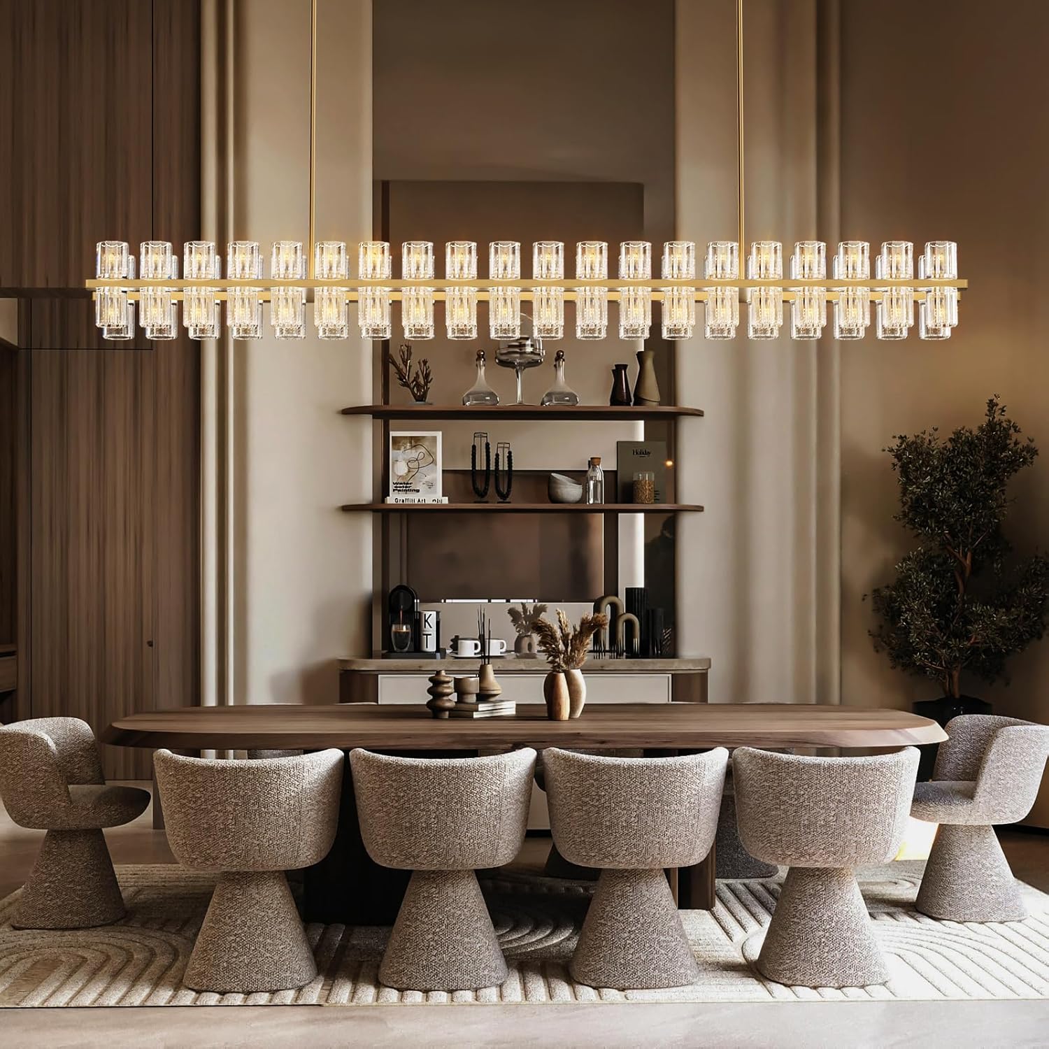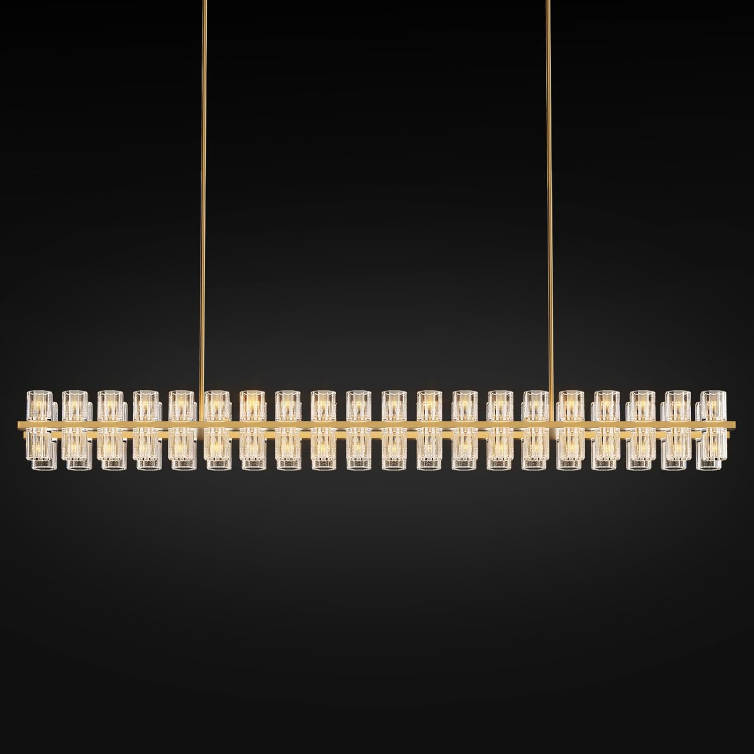 Crystal Brass Rectangular Chandelier Light Fixture,72 in Dining Room Chandeliers Over Table,Modern Chandelier For Living Room,Arcachon Chandeliers,Kitchen Island Chandelier,Includes 80xG4 Bulbs