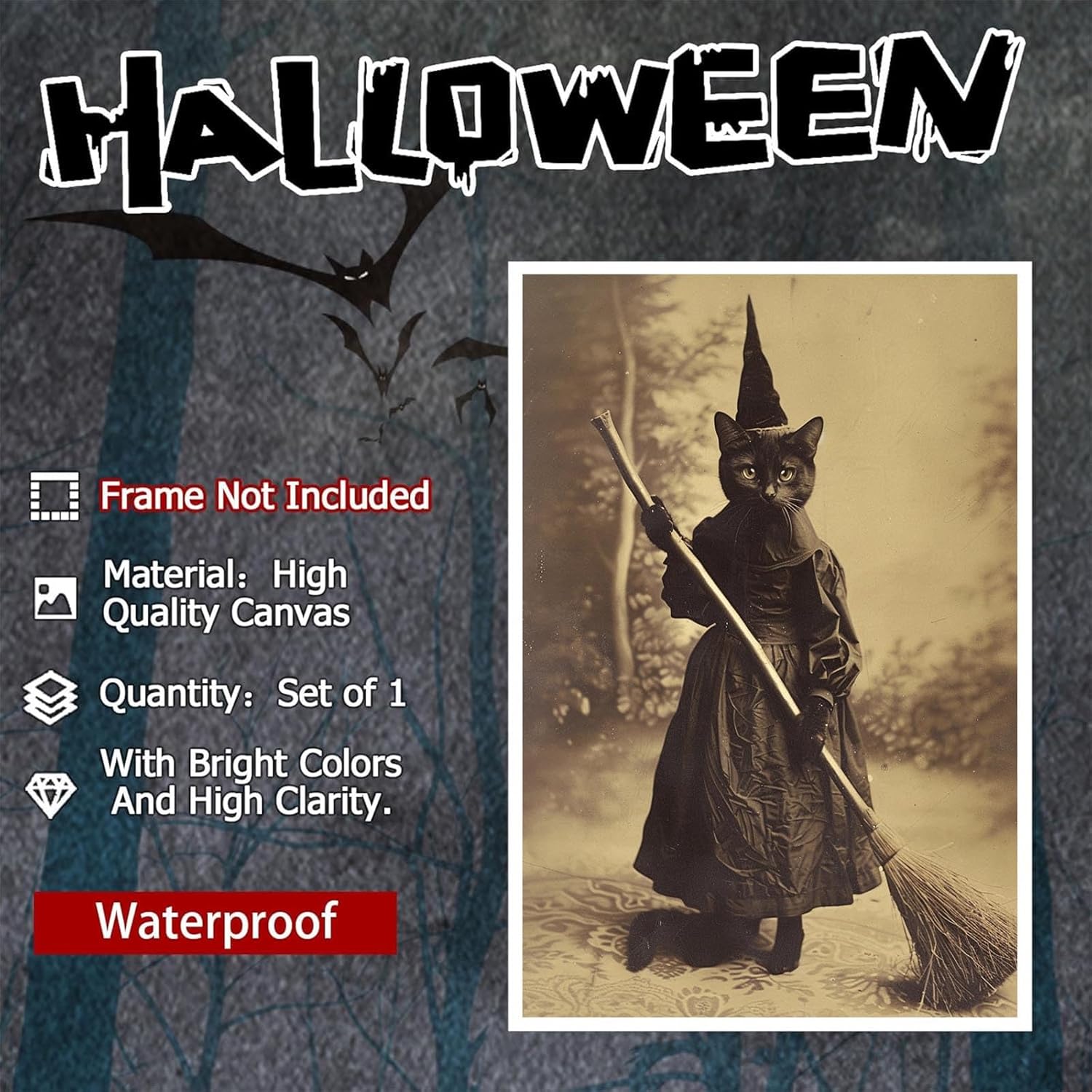 - High-quality Print: The creepy picture poster is a high-quality print, providing clarity and crispness that will stand out in any room. Every detail of the black cat witch is captured impeccably, making the poster an aesthetic showstopper.