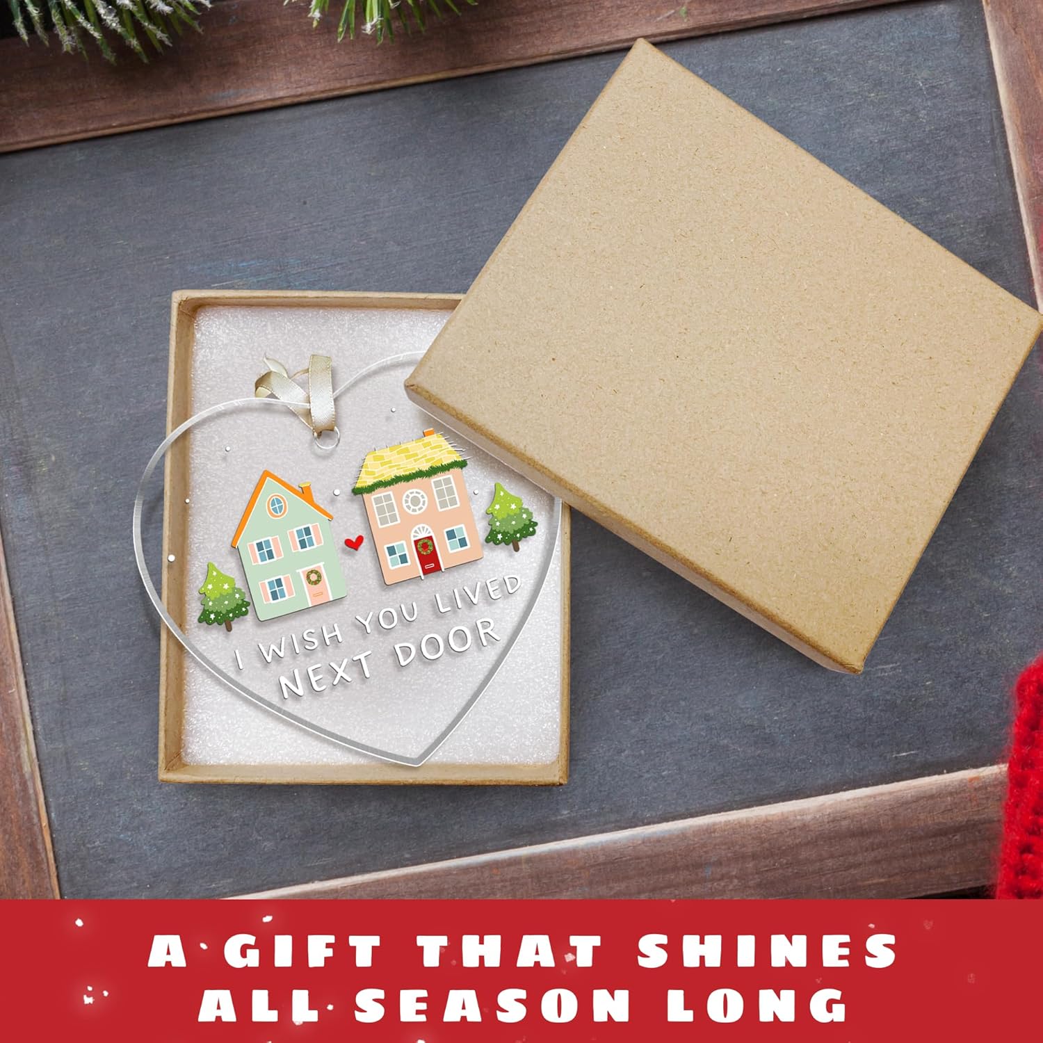 - ORNAMENT SET INCLUDES: You will receive 1x Acrylic Ornament, 1x Beige Ribbon and 1x Gift Box. The small hole in the ornament is threaded with our shining beige ribbon for easy hanging, which creates an elegant look for your Christmas tree.