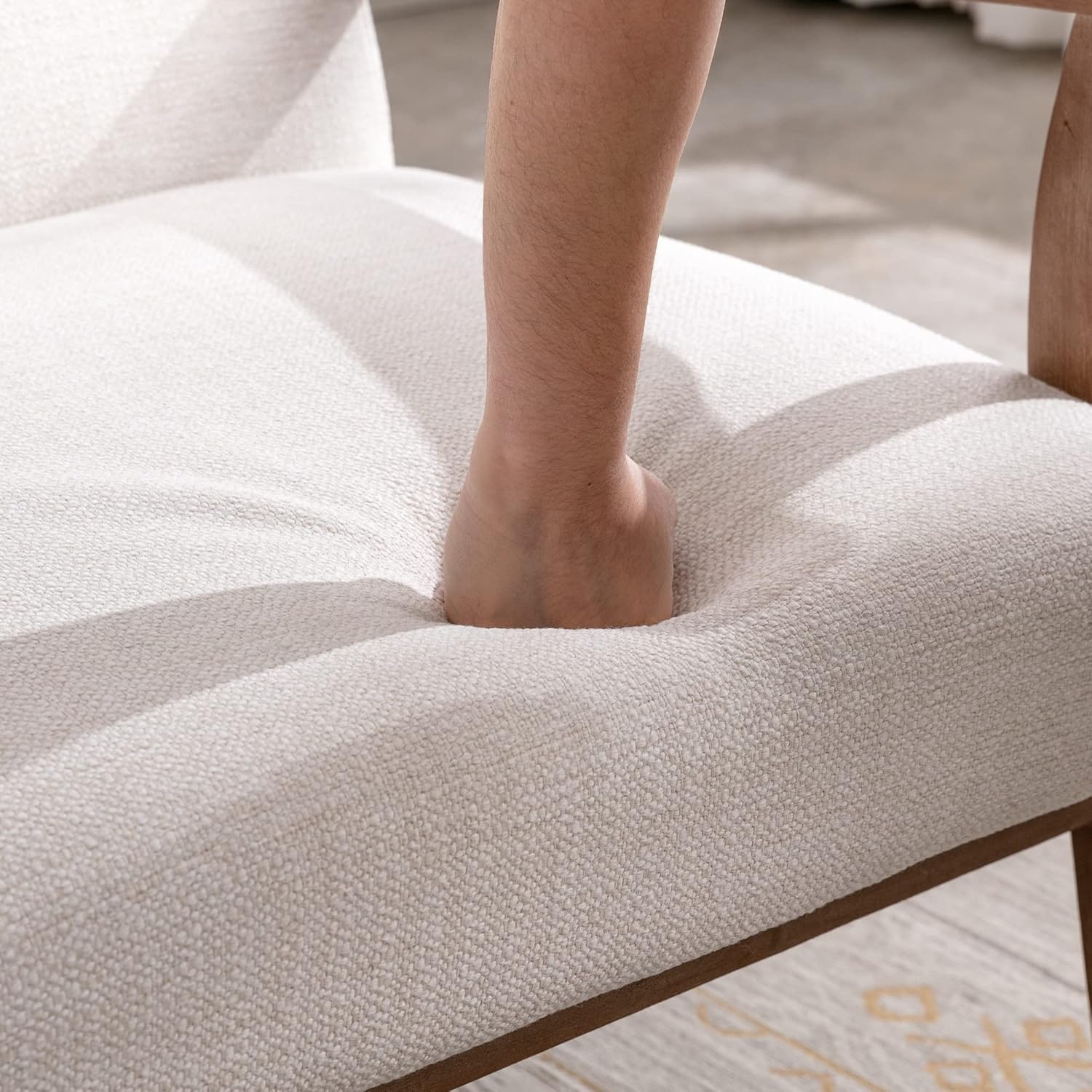 Accent Chair Mid Century Modern Armchair, Linen Upholstered Living Room Accent Armchair with Wood Frame, Farmhouse Chair Indoor Corner Chair for Living Room Bedroom, Ivory