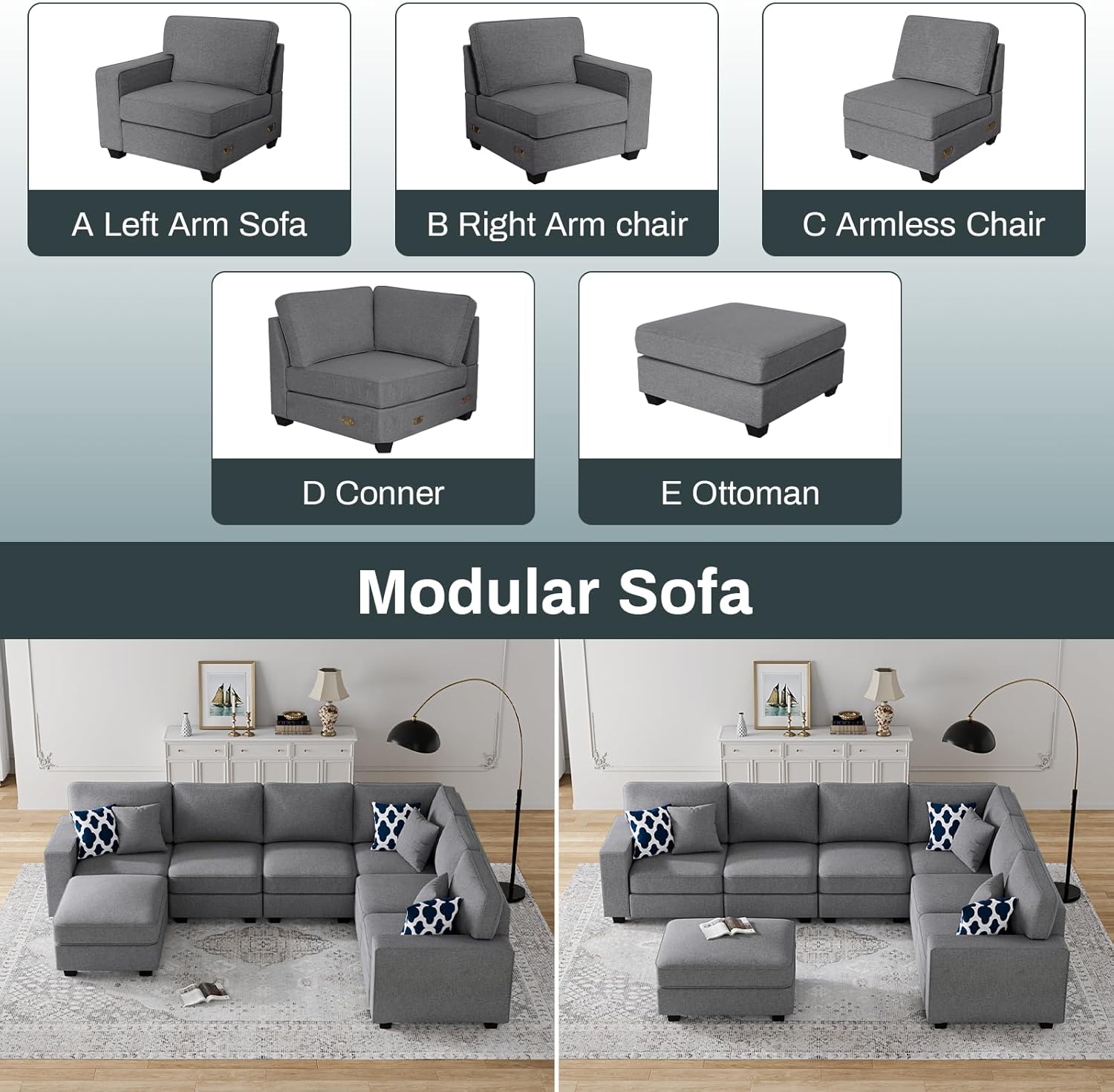- ăHigh Quality FabricăThe modular sectional sofa is made of soft and comfortable polyester fabric, which highlights the exquisite texture of the sectional sofa and gives you a comfortable touch experience. The fabric of the sectional couch is not easy to wrinkle and durable, extending the use of the sectional couches. The beautifully modernized look of the modular couch is designed to fit perfectly into a variety of spaces such as the living room.