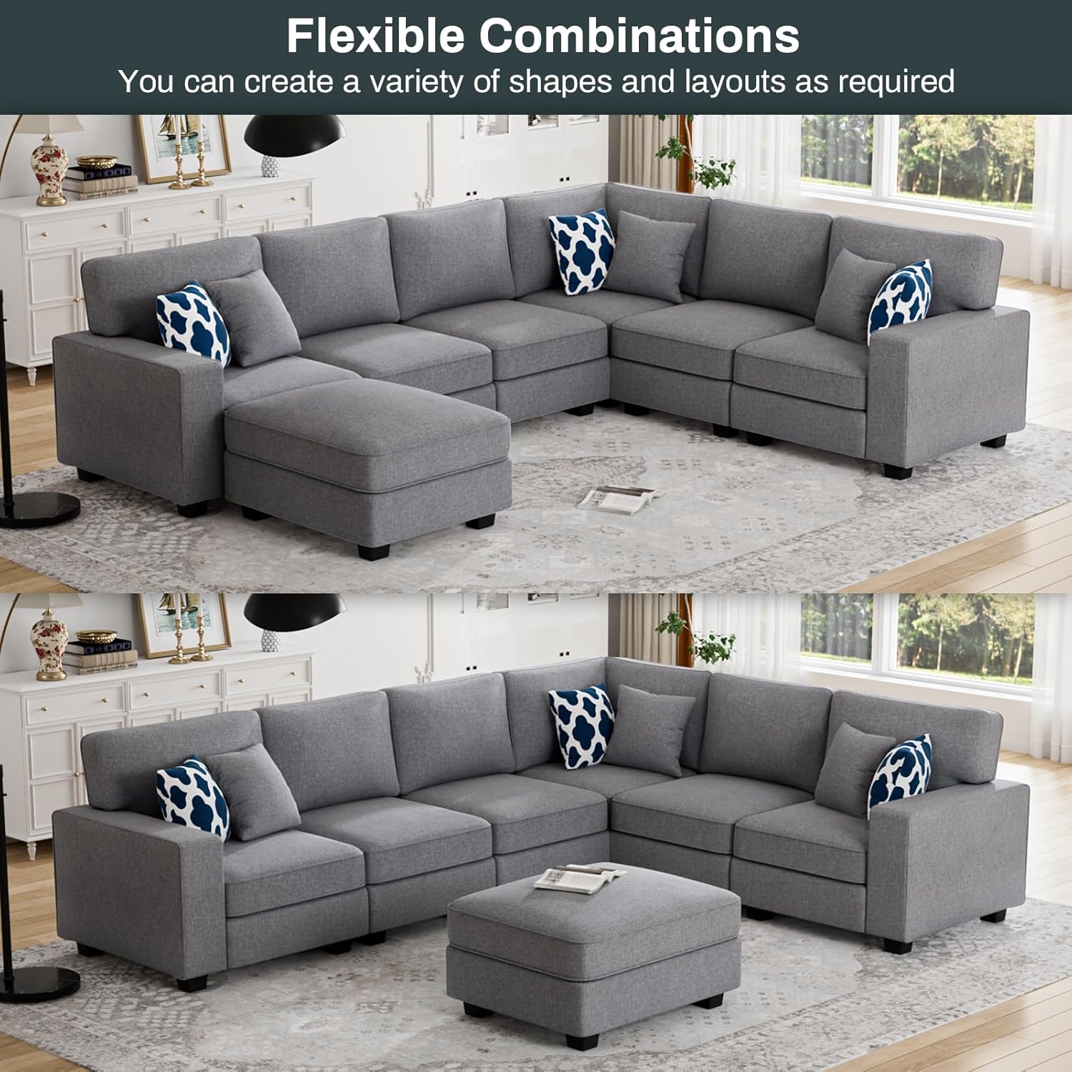 - ăErgonomic DesignăThe backrest of the couches for living room perfectly fits the human body curve, the armrests are wide and at the right height, and the living room sofa as a whole is ergonomically designed to give you comfortable support. The modular sectional sofa is paired with multiple multi-functional small pillows, allowing you to relax anytime, anywhere. The oversized couch has a weight capacity of up to 660 pounds to give you stable support.