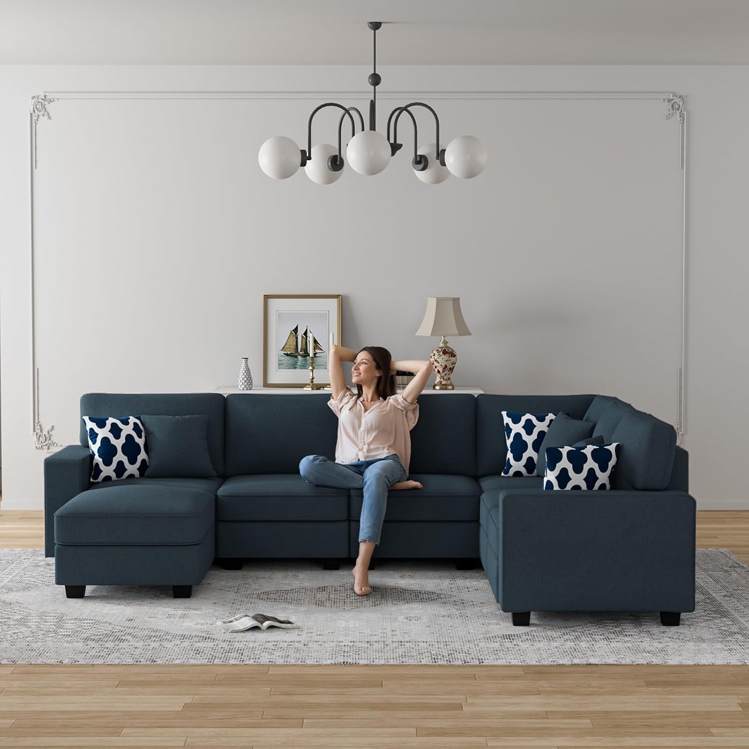 - ăErgonomic DesignăThe backrest of the couches for living room perfectly fits the human body curve, the armrests are wide and at the right height, and the living room sofa as a whole is ergonomically designed to give you comfortable support. The modular sectional sofa is paired with multiple multi-functional small pillows, allowing you to relax anytime, anywhere. The oversized couch has a weight capacity of up to 660 pounds to give you stable support.
