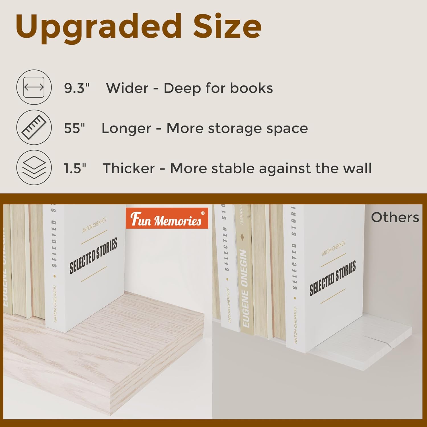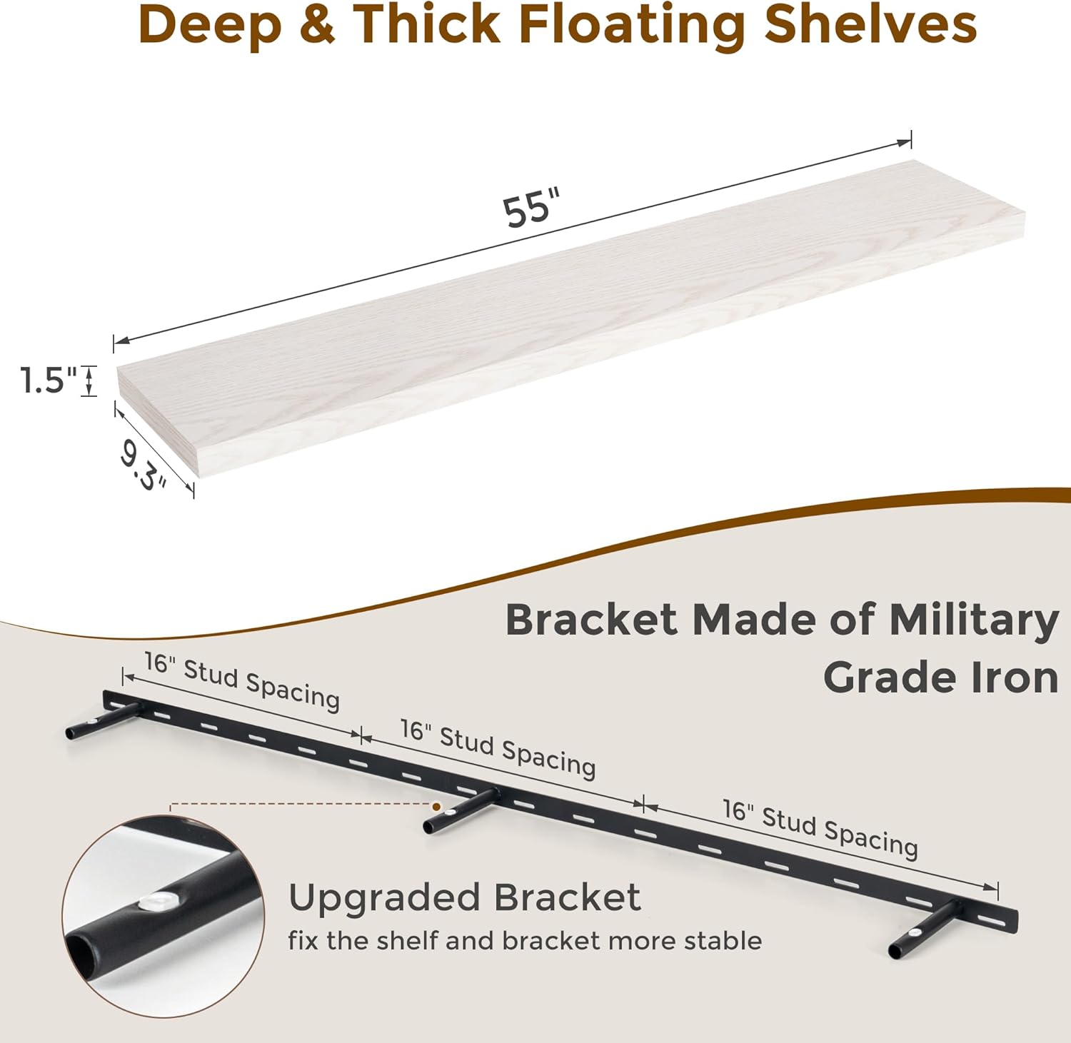 Floating Shelves 55 Inch Long, 55"W x 9"D Wall Shelf Invisible Bracket, 9 Inch Deep Floating Shelf for Wall, Rustic Wooden Shelves for Living Room, Kitchem, Bedroom, Brich Color, Set of 1