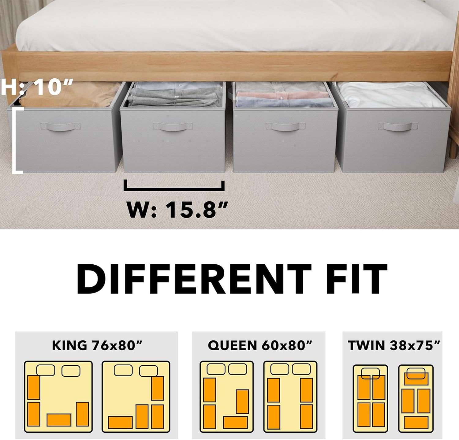 - 4 PACK GRAY UNDER BED STORAGE - Make your underbed space neat and organized with this storage bin organizer; Each Bin SIZE: 31.5"L x 15.8"W x 10"H
