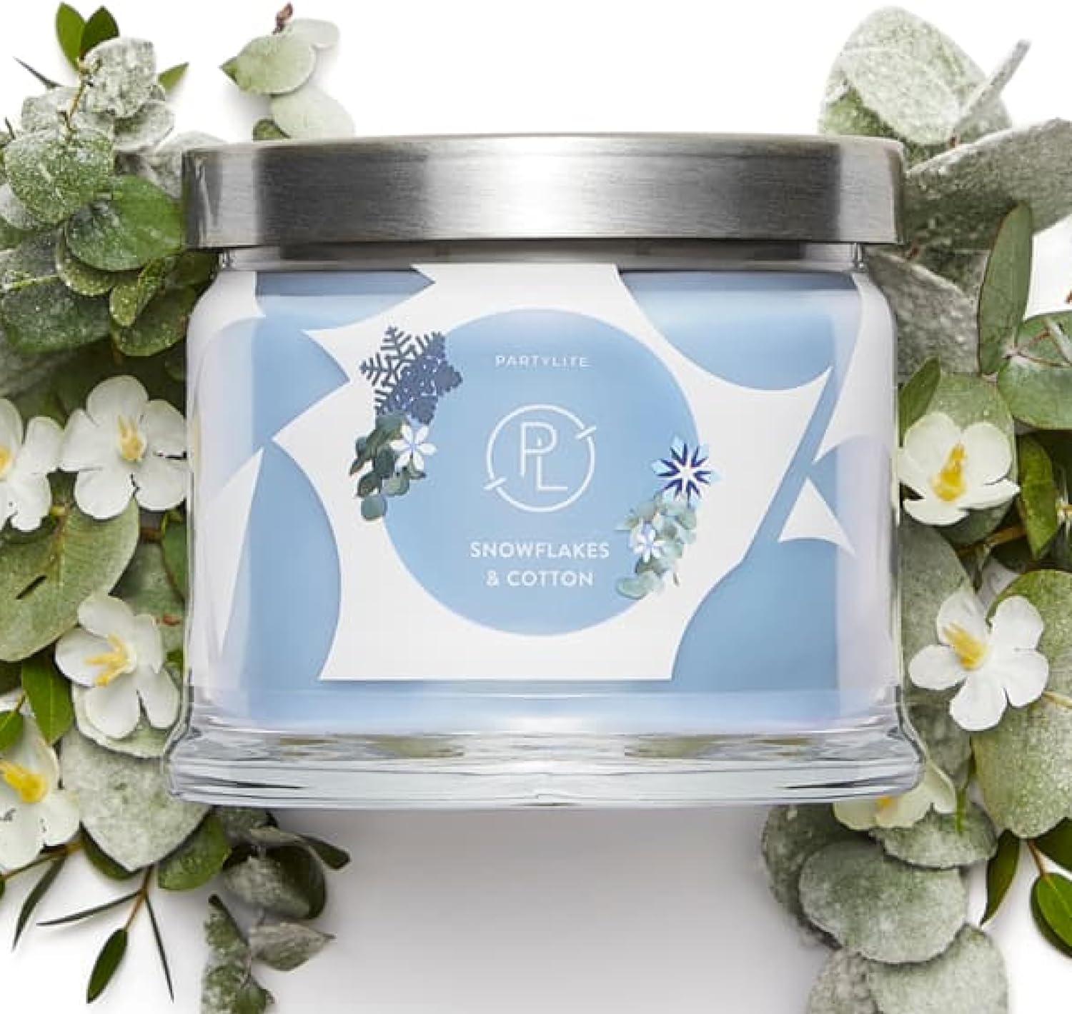 PartyLite 3-Wick Jar Candle, Highly Fragranced Clean Burning Glass Candle, 25-45 Hours Burn Time (Snowflakes & Cotton)