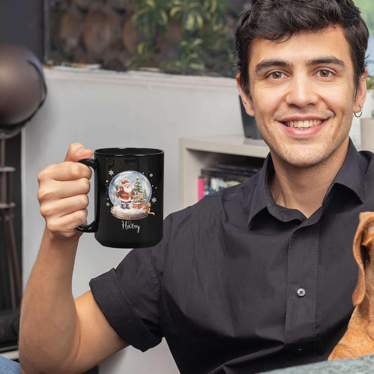 - š UNIQUE DESIGN MUG: Bring holiday joy with this "Custom Snow Ball Design Mug With Name" featuring a festive Santa inside a sparkling snow globe with gifts and a Christmas tree. Click "Customize Now" to personalize with a name and create a unique gift for spreading holiday cheer. This black ceramic mug is ideal for enjoying your favorite seasonal beverages.