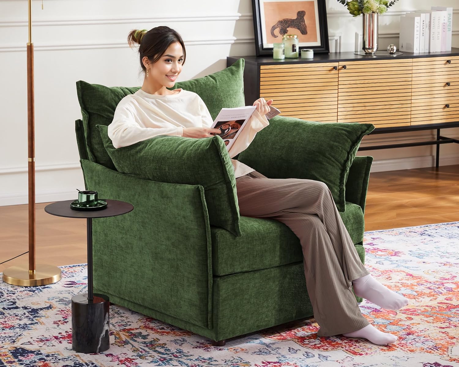 Oversized Accent Chair, Upholstered Modern Sofa Chair with Removable Backrest & Detachable Cover, 24.5" Deep Seat Large Reading Armchair for Living Room Bedroom Office - Chenille Green Set of 2