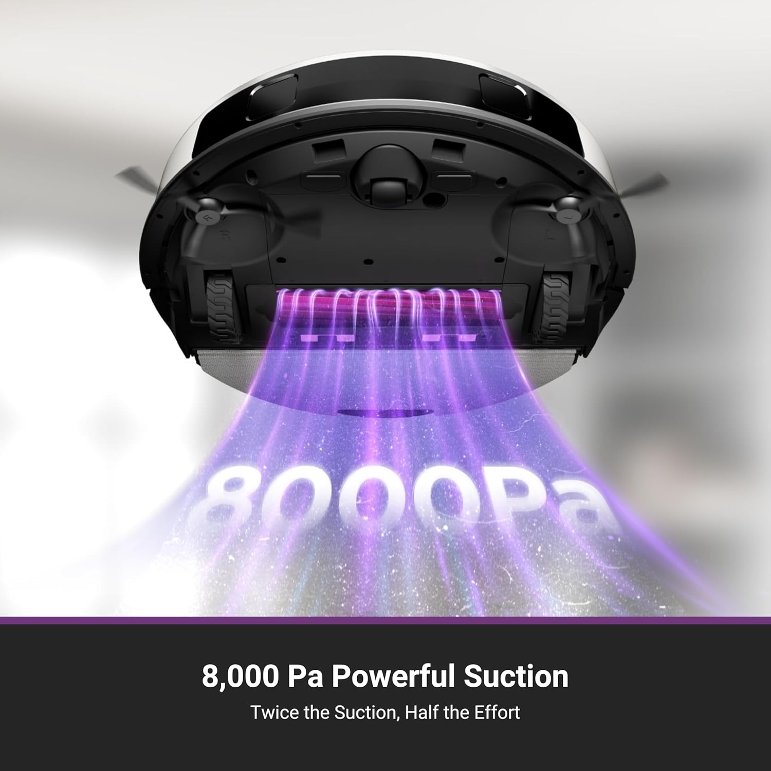 - ă8000Pa Suction PowerăA self-developed motor allows the E20 Plus robot vacuum to deliver an impressive 8000 Pa of suction powerâa 100%* improvement over the previous model. This substantial increase in power enables the E20 Plus to effortlessly clean the hard floor and carpet more deeply, easy sweeping dust, tangled cat and dog hair, effectively removing deeply.