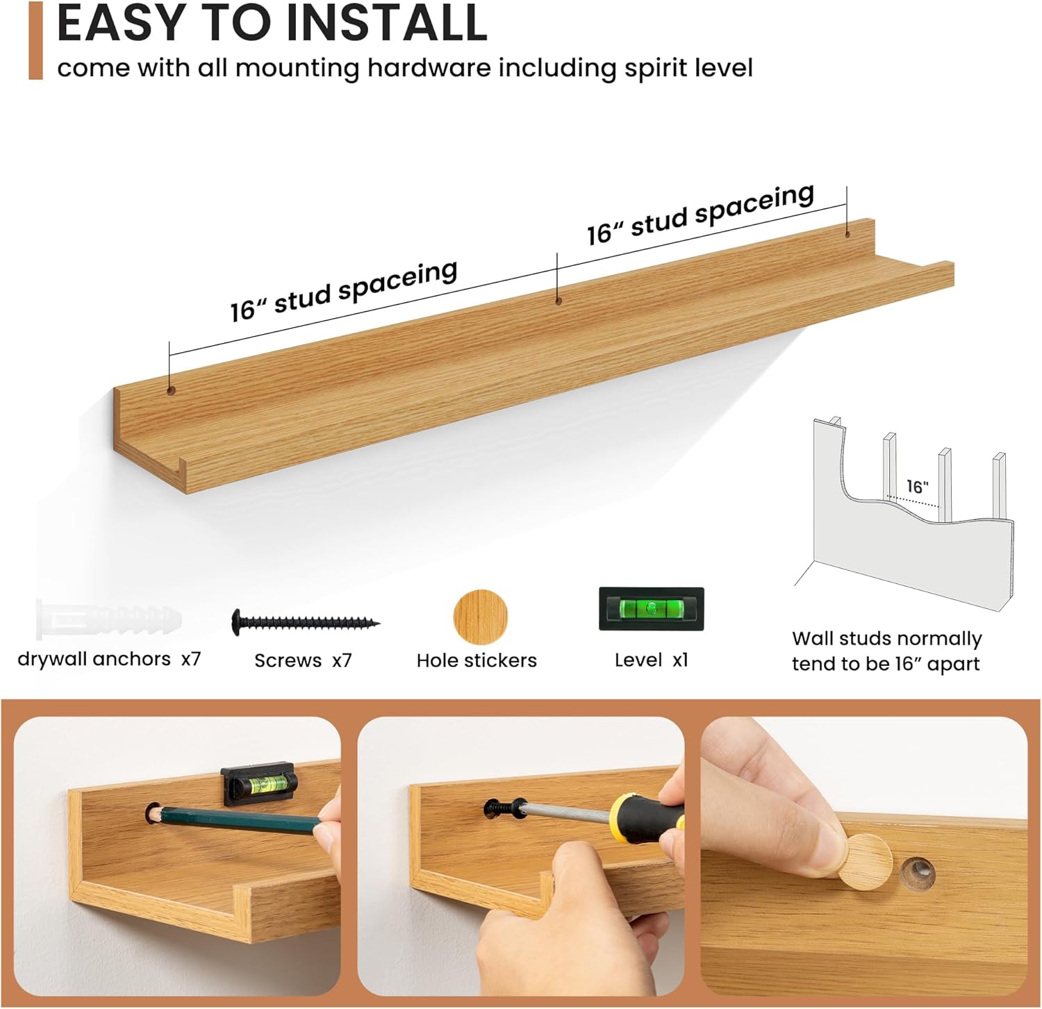 - Effortless Installation: Each shelf comes with pre-drilled holes and all necessary hardware, making installation quick and easy, so you can enjoy your new decor in no time.
