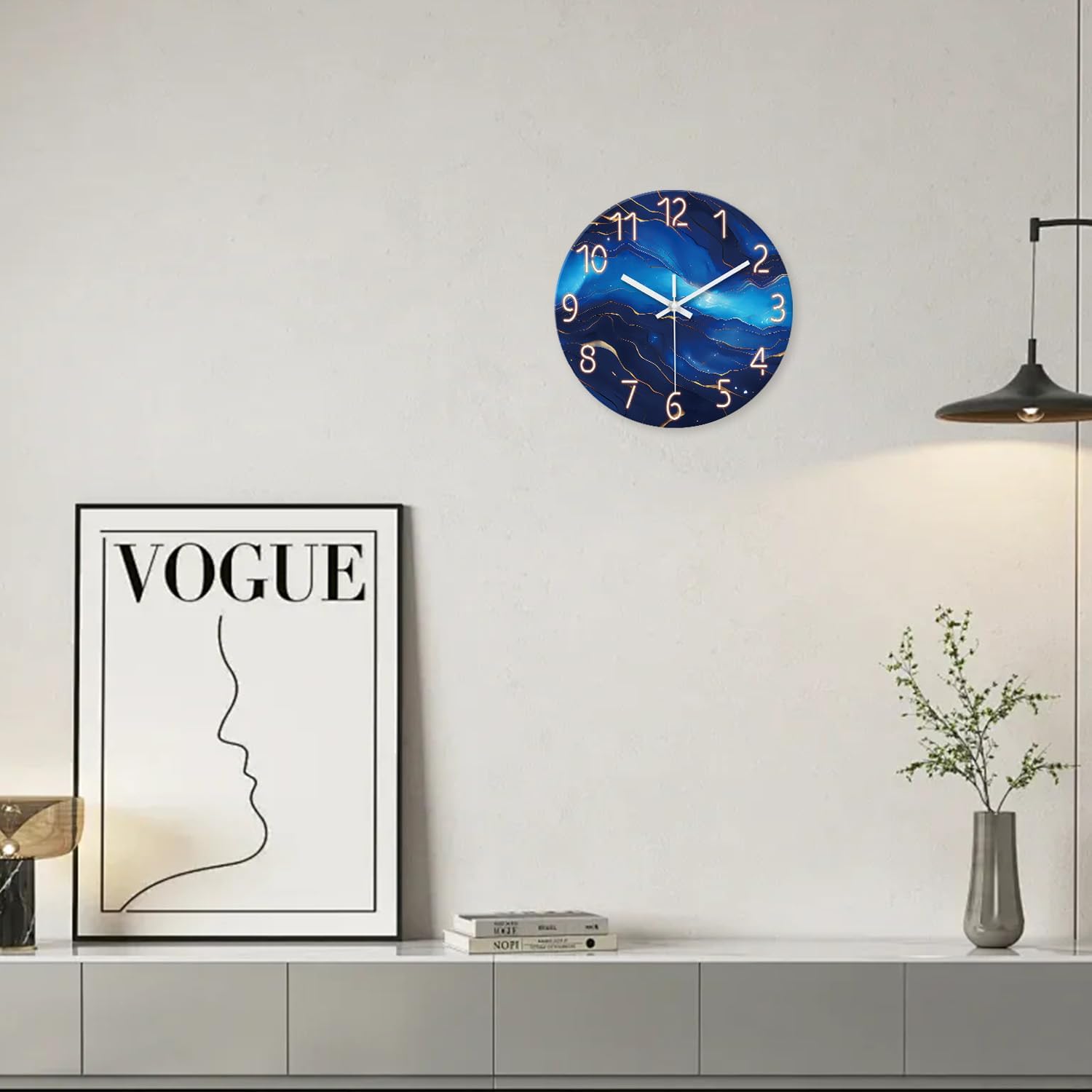 Glass Wall Clocks Battery Operated 14 Inch Modern Abstract Wall Clock for Bedroom Blue Wall Clock Silent Non Ticking