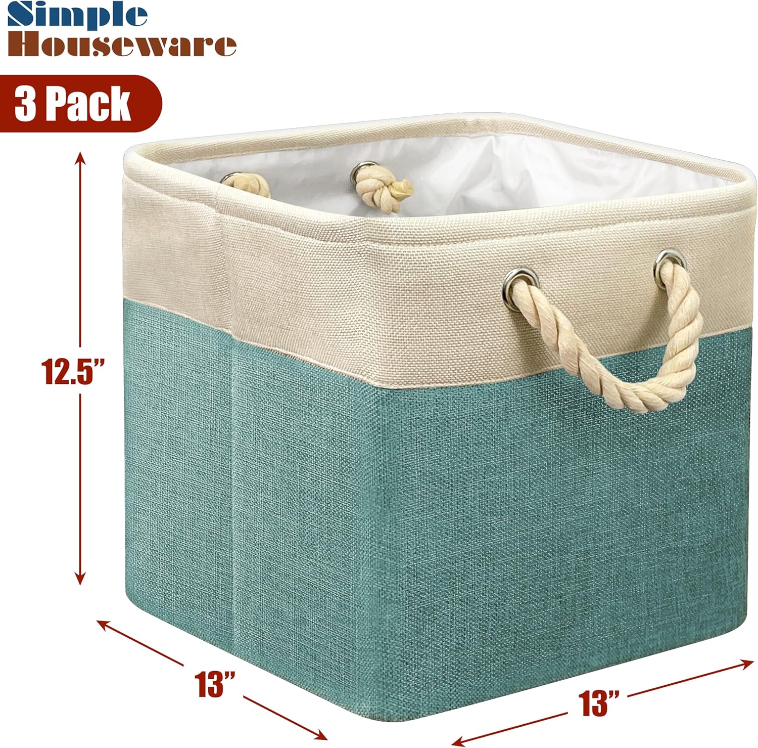SIMPLE HOUSEWARE Fabric Storage Cubes, 13" x 13" Storage Bin, 3 Pack, Turquoise