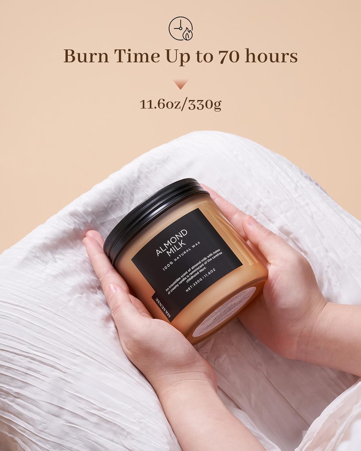 - Sustainable Formula - M&SENSE candles are all made with the finest and most natural ingredients. Using a high-end blend of American grown soy and vegetable wax with double unbleached cotton wicks in a reusable and recyclable glass jar. Packaged in recycled cardboard box for a more sustainable future