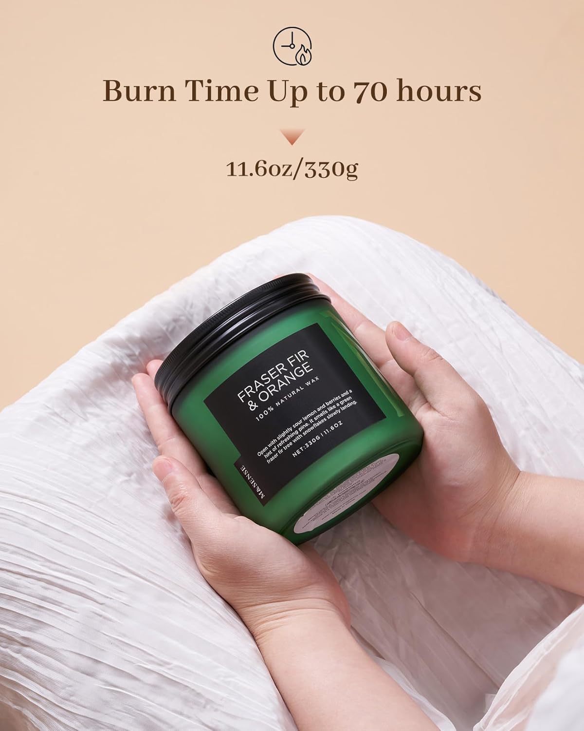 M&SENSE Fir & Orange Scented Candle, 11.6oz Soy Wax Non Toxic for Home Up to 70 Hours, 2 Cotton Wick Christmas Tree Scent Holiday Aromatherapy Candle for Relaxation
