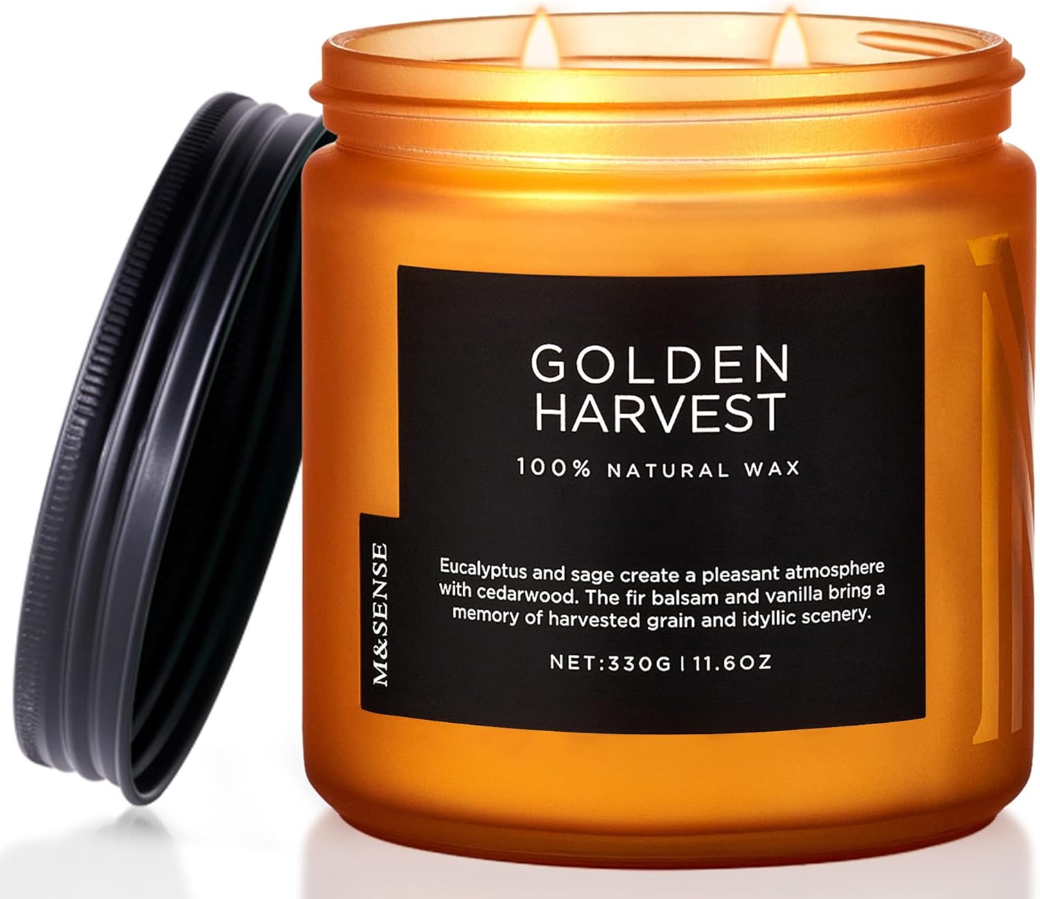 M&SENSE Golden Eucalyptus & Sage Scented Candle, 11.6oz Natural Soy Wax 70 Hours Long Lasting Highly Scented 2 Cotton Wick Candle Gifts for Birthday Holiday, Decorative & Home