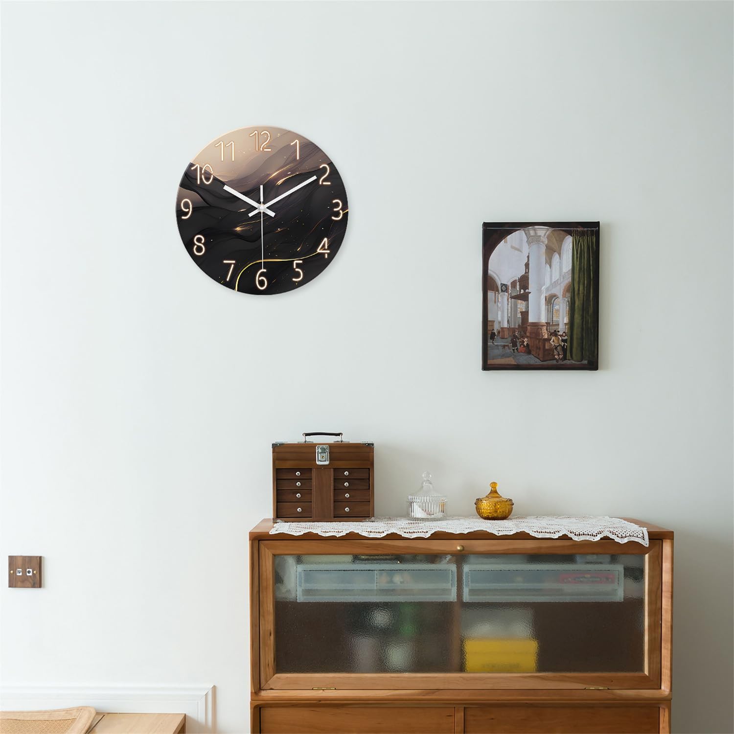 Large Wall Clocks Battery Operated 16 Inch Marble Glass Wall Clock for Living Room Black and Glod Wall Clock Silent Non Ticking