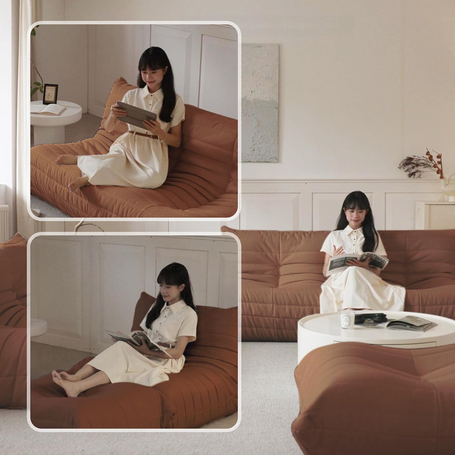 Luxury Ottomans, Modern Square Foot Rest for Sofa Couch Chair, Lazy Floor Seating, Fireside Bean Bag Chair, Tatami Sofa Lounger for Living Room, Bedroom, Office, Brown