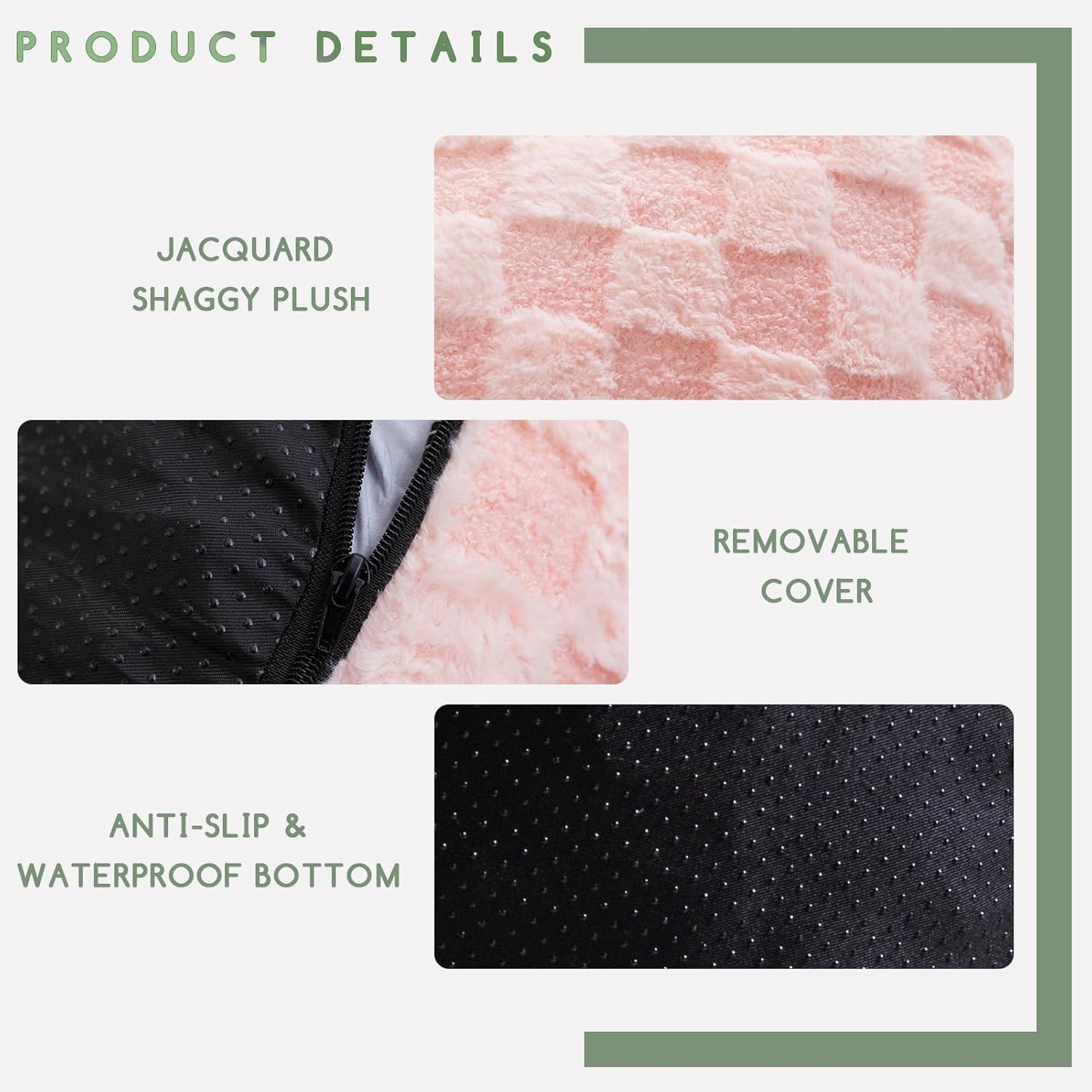 HIGOGOGO Round Stuffed Pouf Ottoman, Plaid Poufs with Foam Chunk Filling, Fluffy and Furry Pouf Foot Stool Storage Ottoman, 26 X 18 Floor Poufs Foot Rest for Living Room, Pink