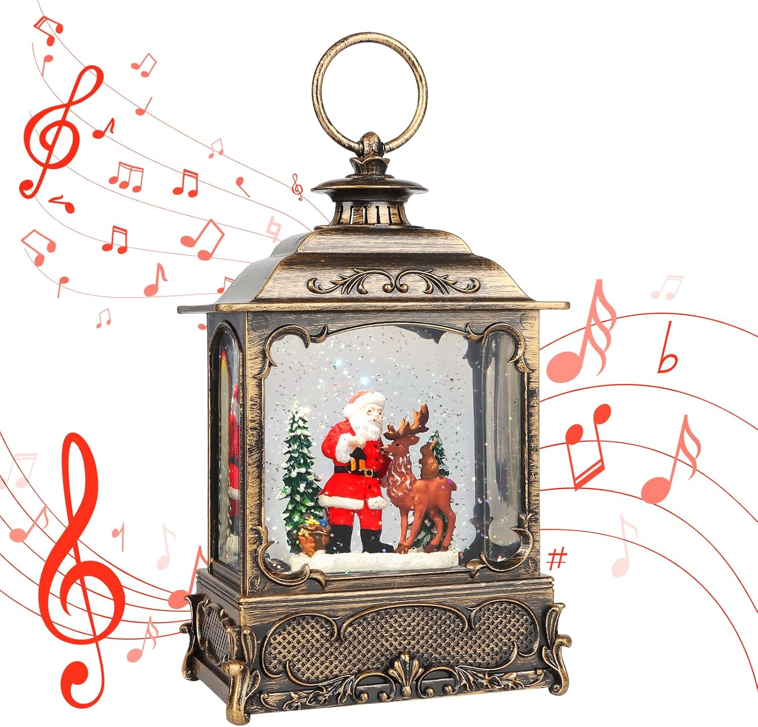 - USB & Battery Powered:Christmas Snow Globe Lantern that can be powered by USB cable (included) or 3 AA batteries (not included). The rotating water glitter lantern creates a festive atmosphere with snowy scenes and warm lights.