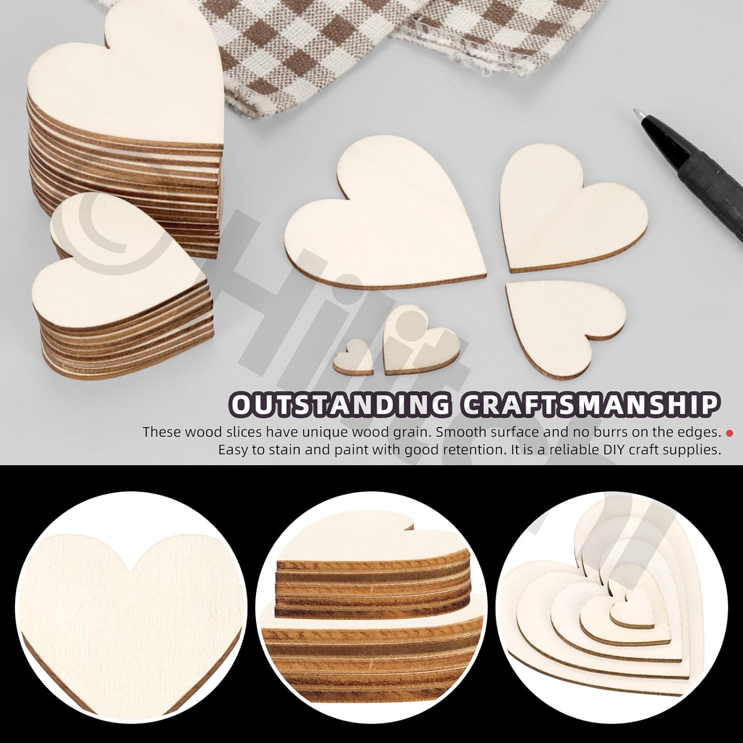- đăWhat You Will GetăIn this kit, you will get 100pcs 10mm/0.4" unfinished wooden hearts, 80pcs 20mm/0.78" unfinished wooden hearts, 60pcs 30mm/1.18" unfinished wooden hearts, 40pcs 40mm/1.57" unfinished wooden hearts, 20pcs 50mm/0.2" unfinished wooden hearts, in total 300pcs. Sufficient quantity and rich sizes can meet your daily DIY use.