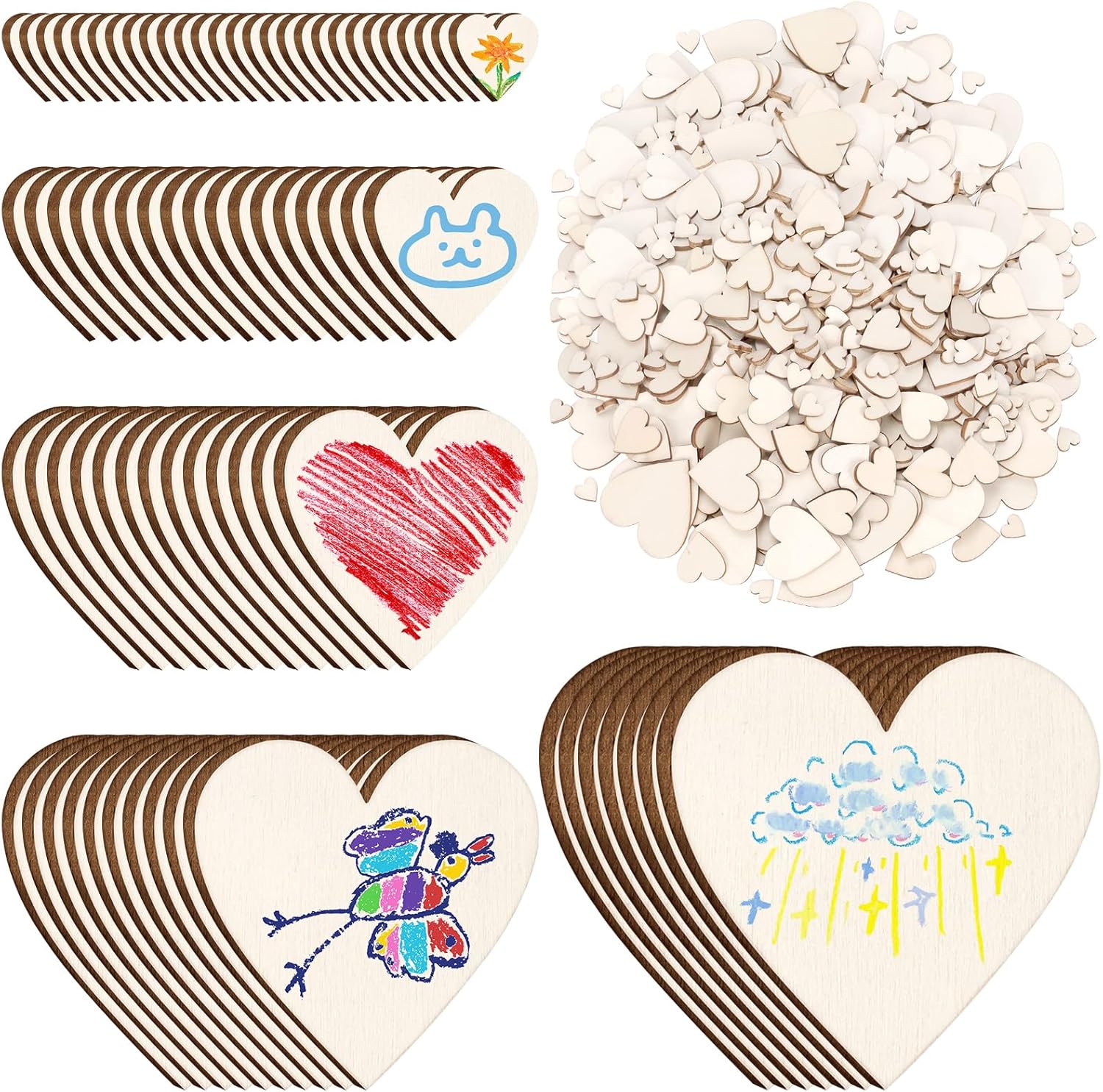 Hilitchi 300Pcs 5Sizes Unfinished Wooden Hearts Wood Hearts Craft Unfinished Wooden Hearts Ornanents Wooden Hearts Shape Blank Wood Ornaments Cutout Blank Wood for DIY Art Crafts Home Decorations