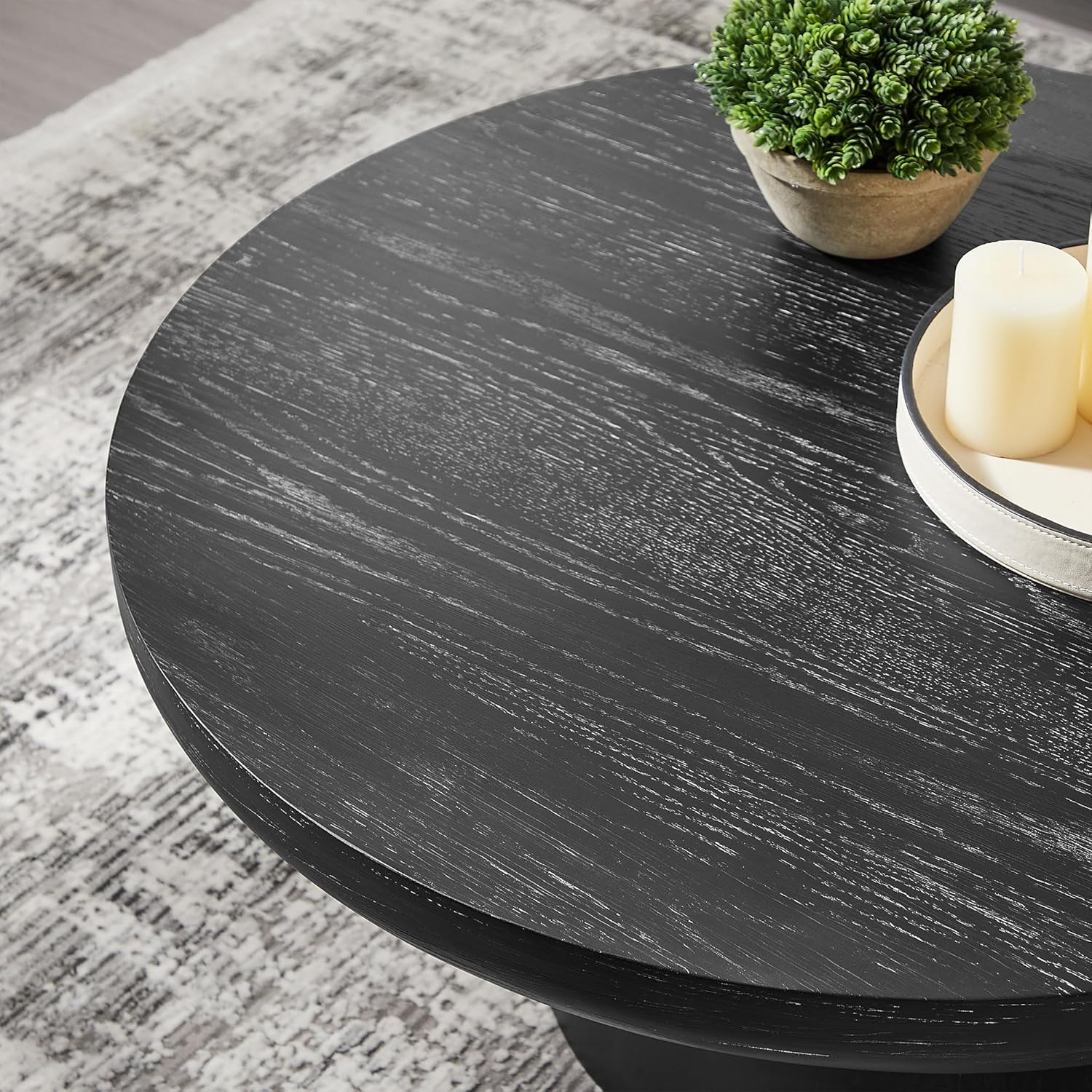 WILLIAMSPACE 35.98" Round Coffee Table with Cylindrical Base, Modern Wood Drum Center Table, Accent Side End Table for Living Room Apartment, φ35.98"*15.98"H (Black)