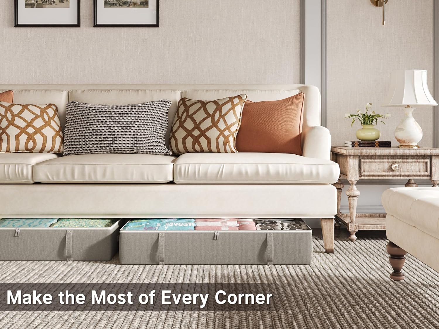 - High Quality Materials - Made of sturdy composite Linen fabric, the storage bins under the bed can hold bulky books and toys without falling apart. Durable handles and dual zippers make it easy to use in daily life. Transparent top cover helps find the items quckly