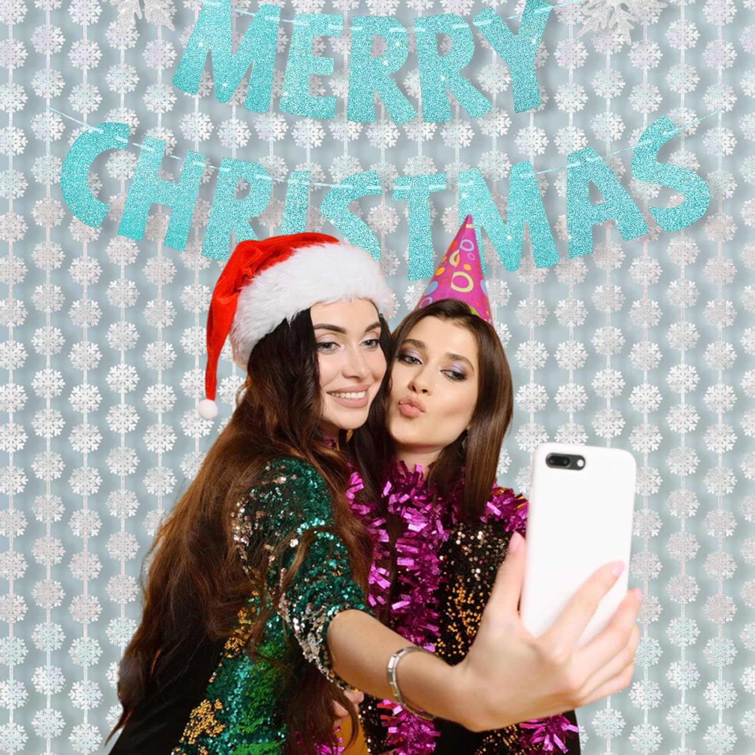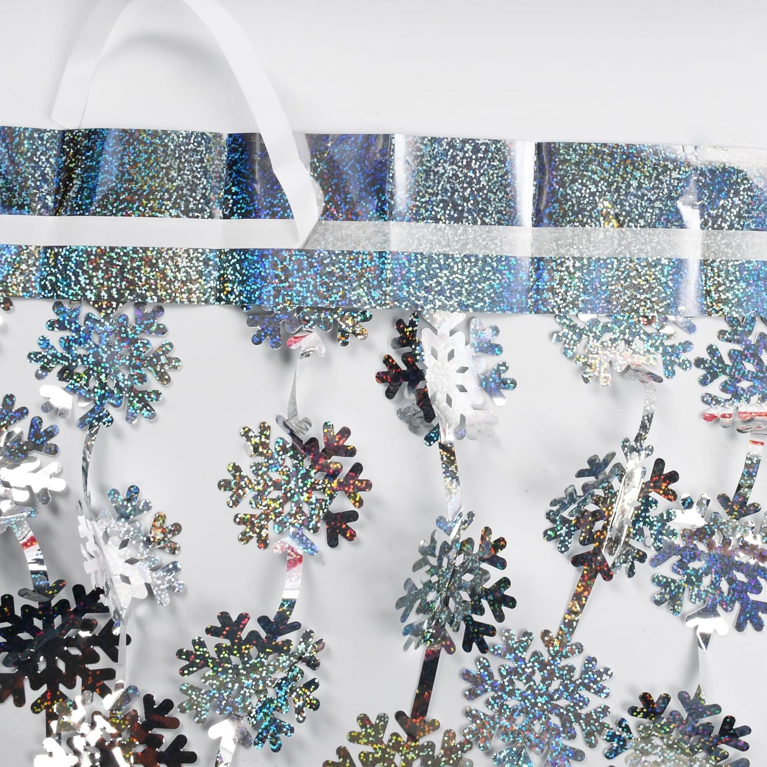 - 3.2 ft x 6.6 ft foil fringe snowflake backdrop are enough long and it covers just right for different events.